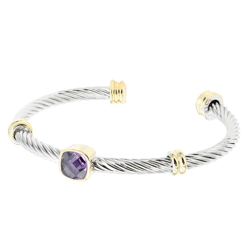CZ SQUARE TWO TONE CUFF BRACELET