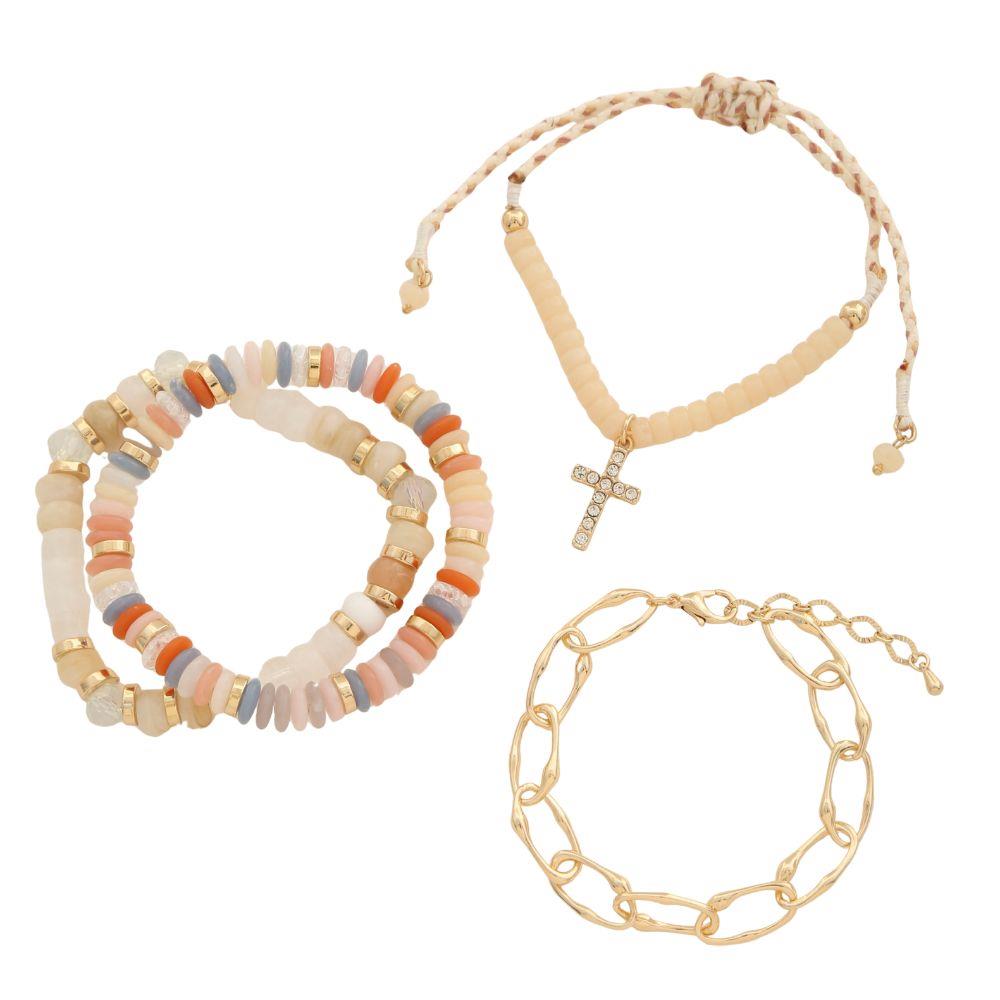 CROSS CHARM BEADED BRACELET SET