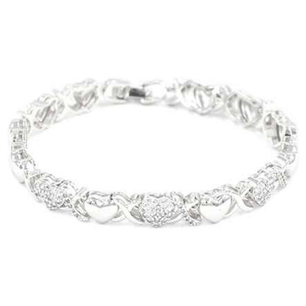 HEART CHARM RHINESTONE OVAL LINK METAL BRACELET