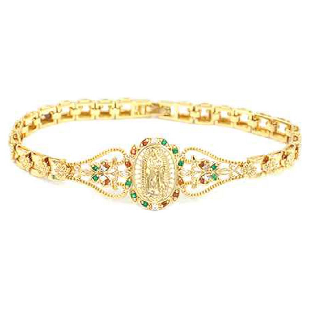 RHINESTONE OVAL VIRGIN MARY LINK BRACELET