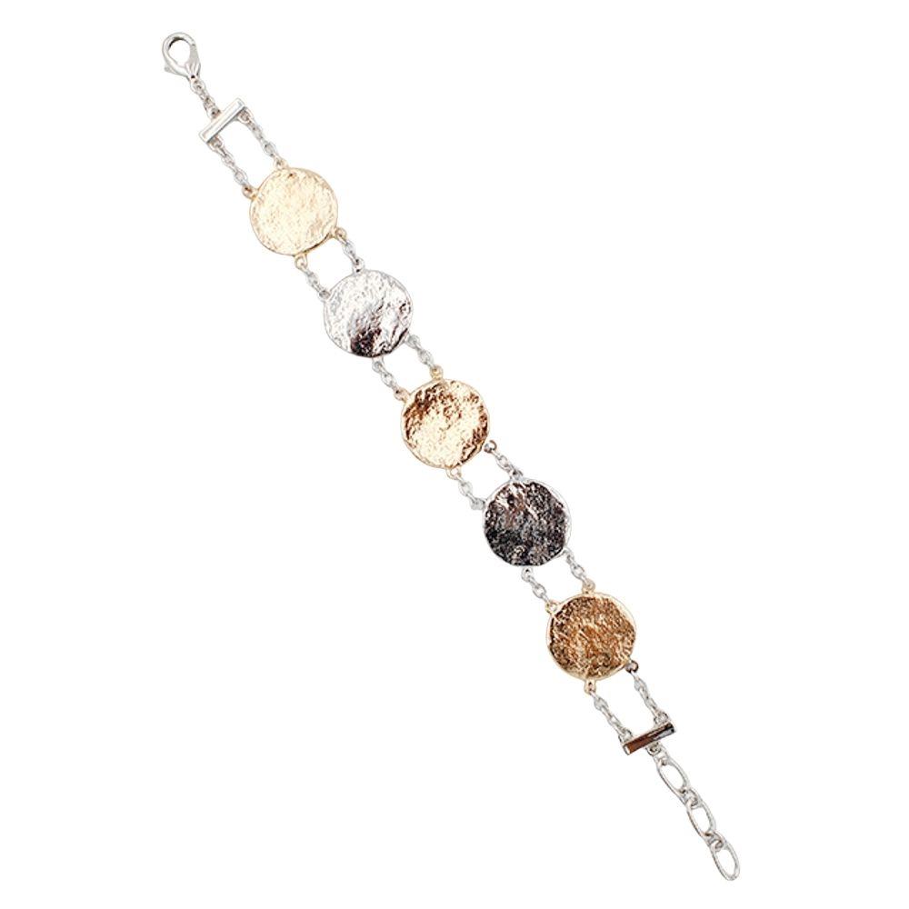 HAMMERED METAL ROUND LAYERED CHAIN BRACELET