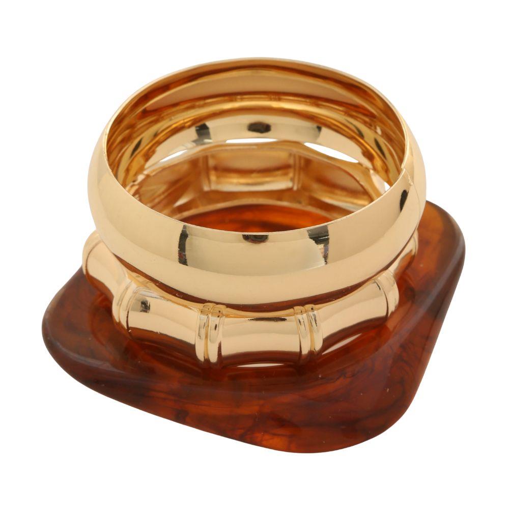 SDJ ACETATE SQUARE METAL BANGLE BRACELET SET