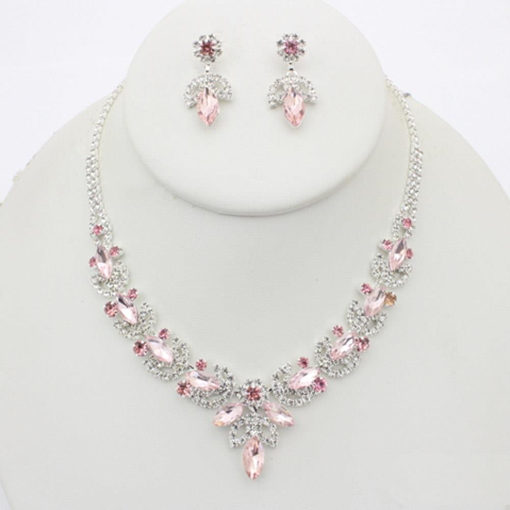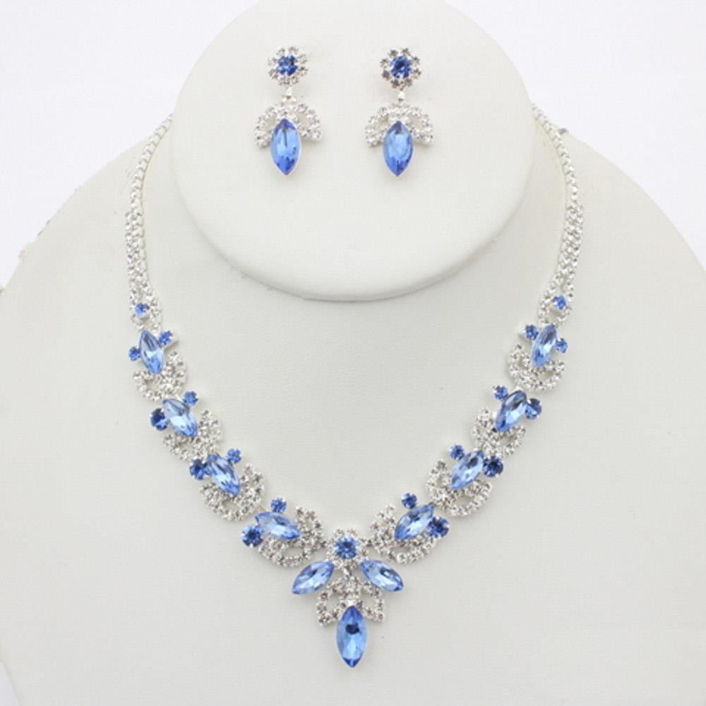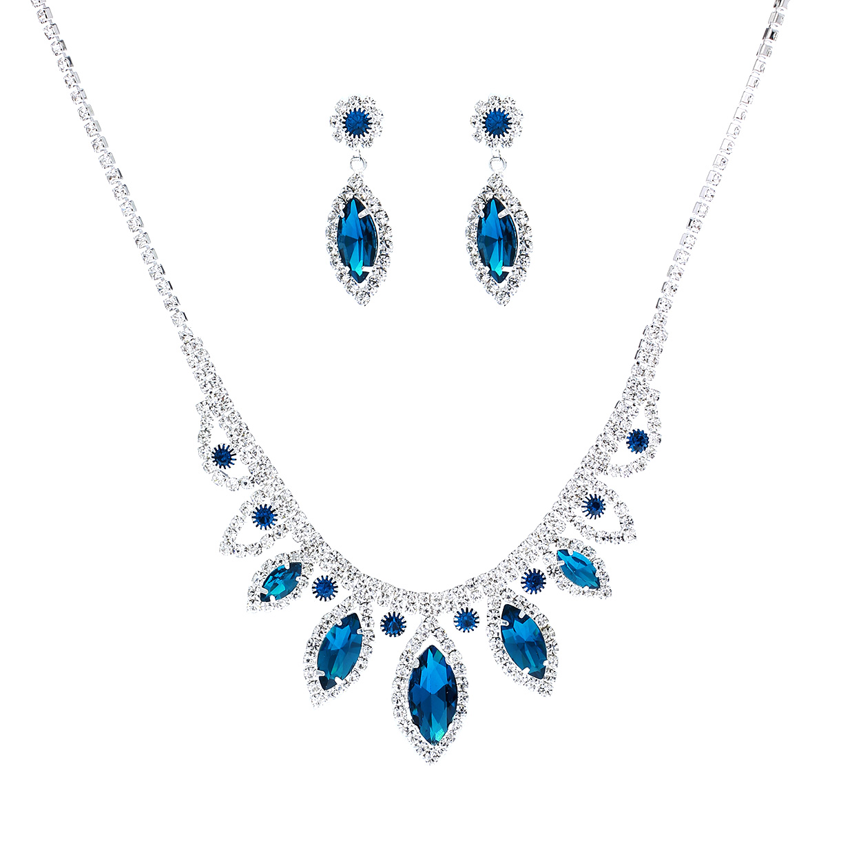 RHINESTONE MARQUISE PEAR SHAPE NECKLACE EARRING SET