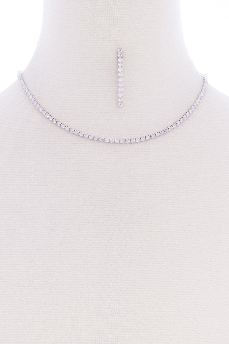 RHINESTONE CLASSIC TENNIS NECKLACE EARRING SET
