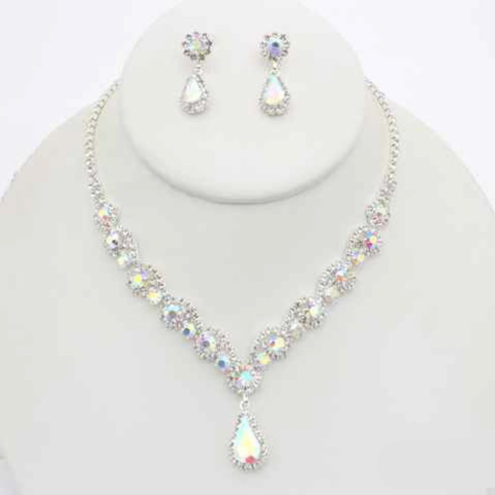 RHINESTONE TEARDROP ROUND 3 PC NECKLACE