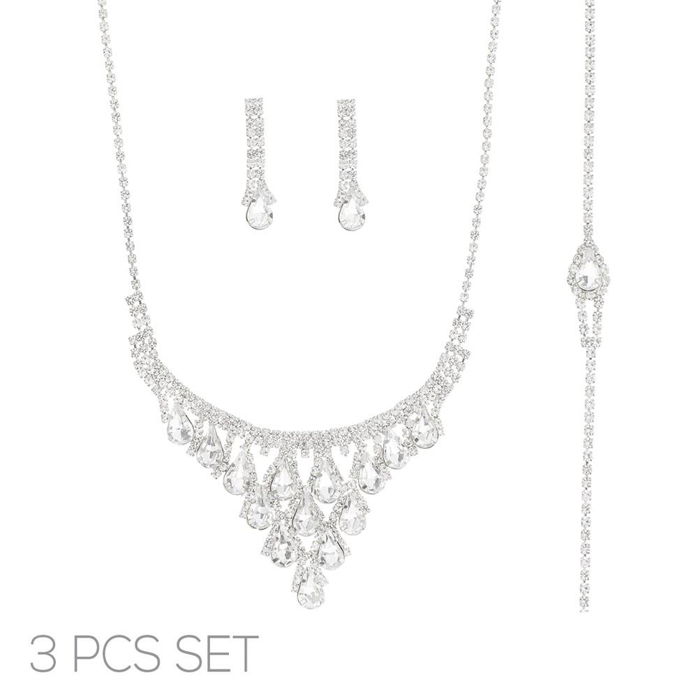 RHINESTONE TEARDROP NECKLACE EARRING BRACELET 3 PC SET