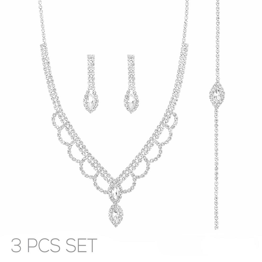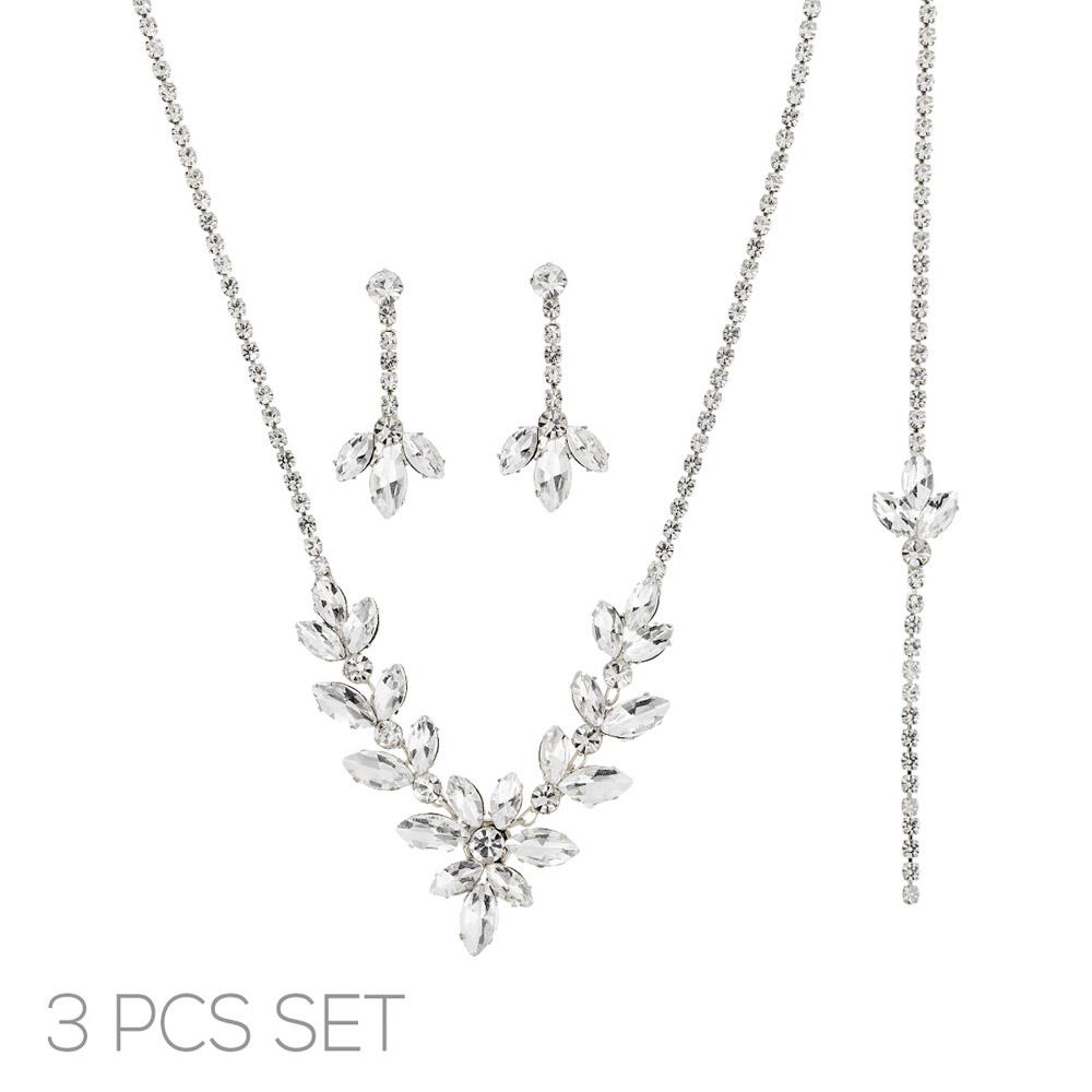 RHINESTONE MARQUISE LEAF 3 PC NECKLACE EARRING SET
