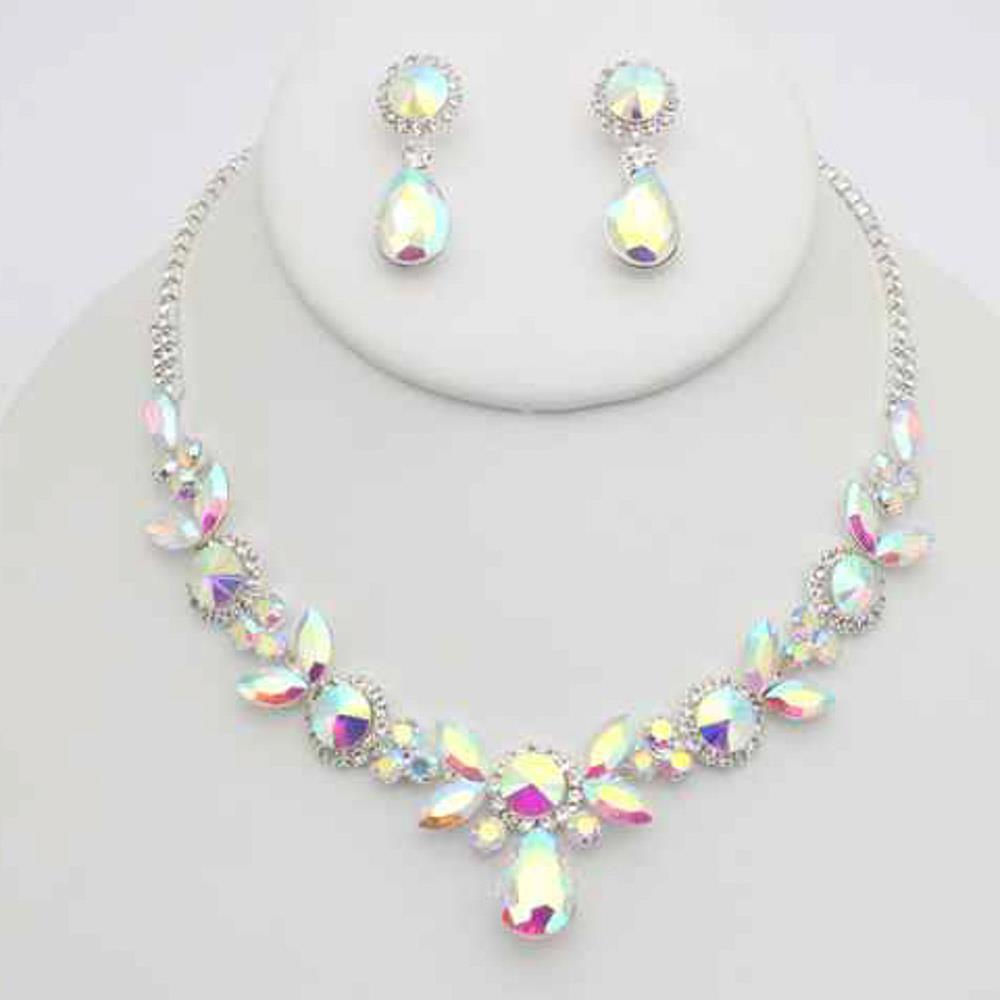 CRYSTAL TEARDROP STATEMENT NECKLACE EARRING SET