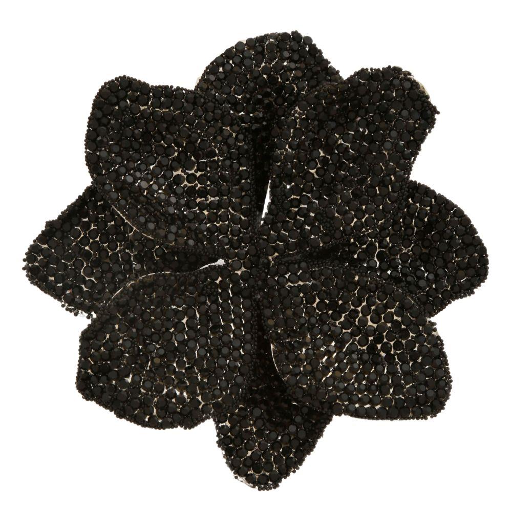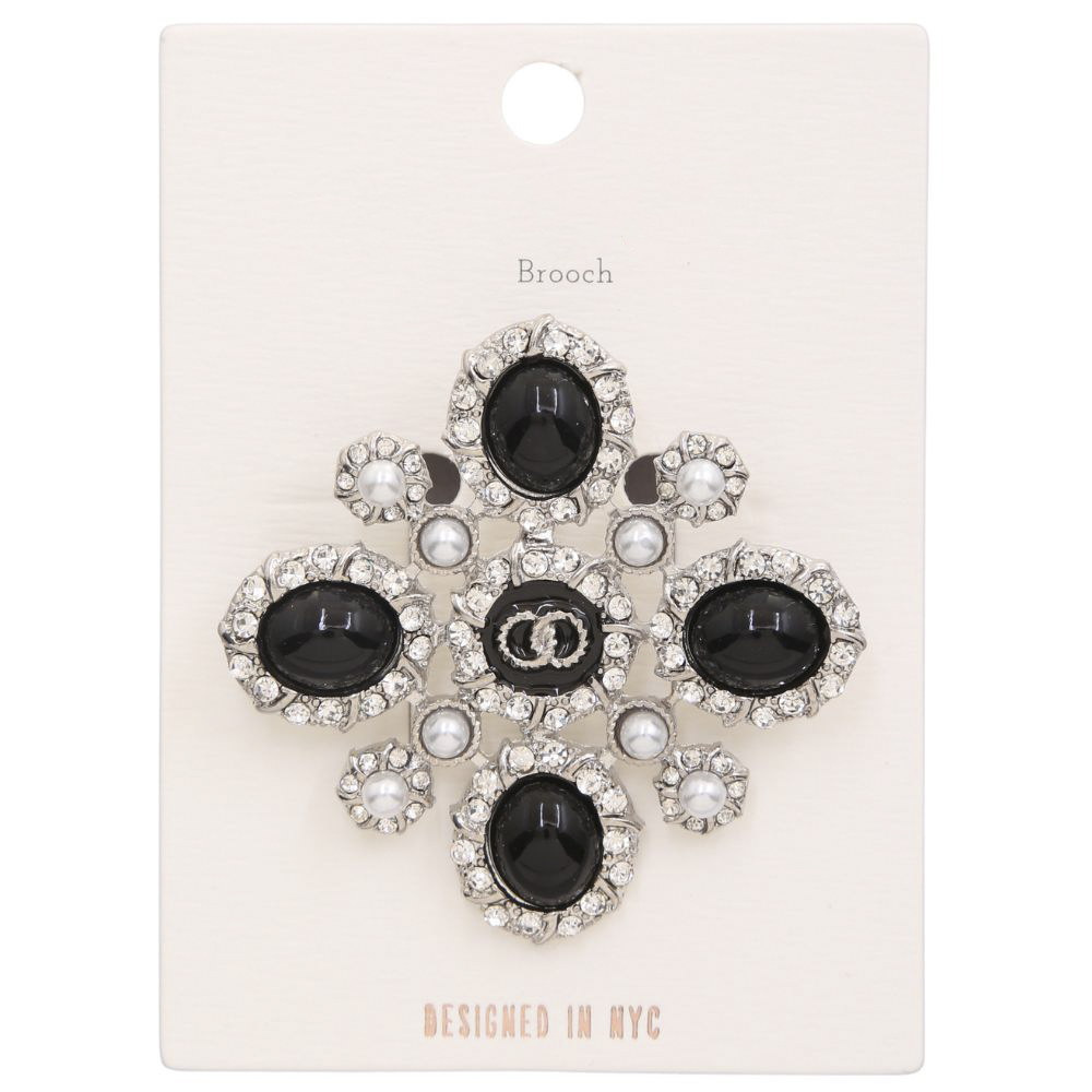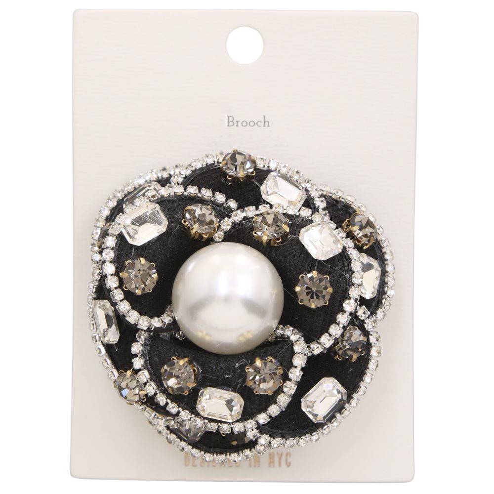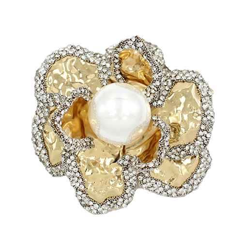 RHINESTONE FLOWER PEARL CENTER STATEMENT BROOCH PIN