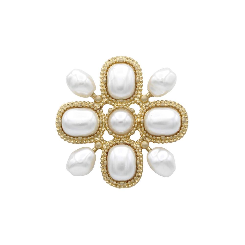 RHINESTONE PEARL METAL FLOWER BROOCH