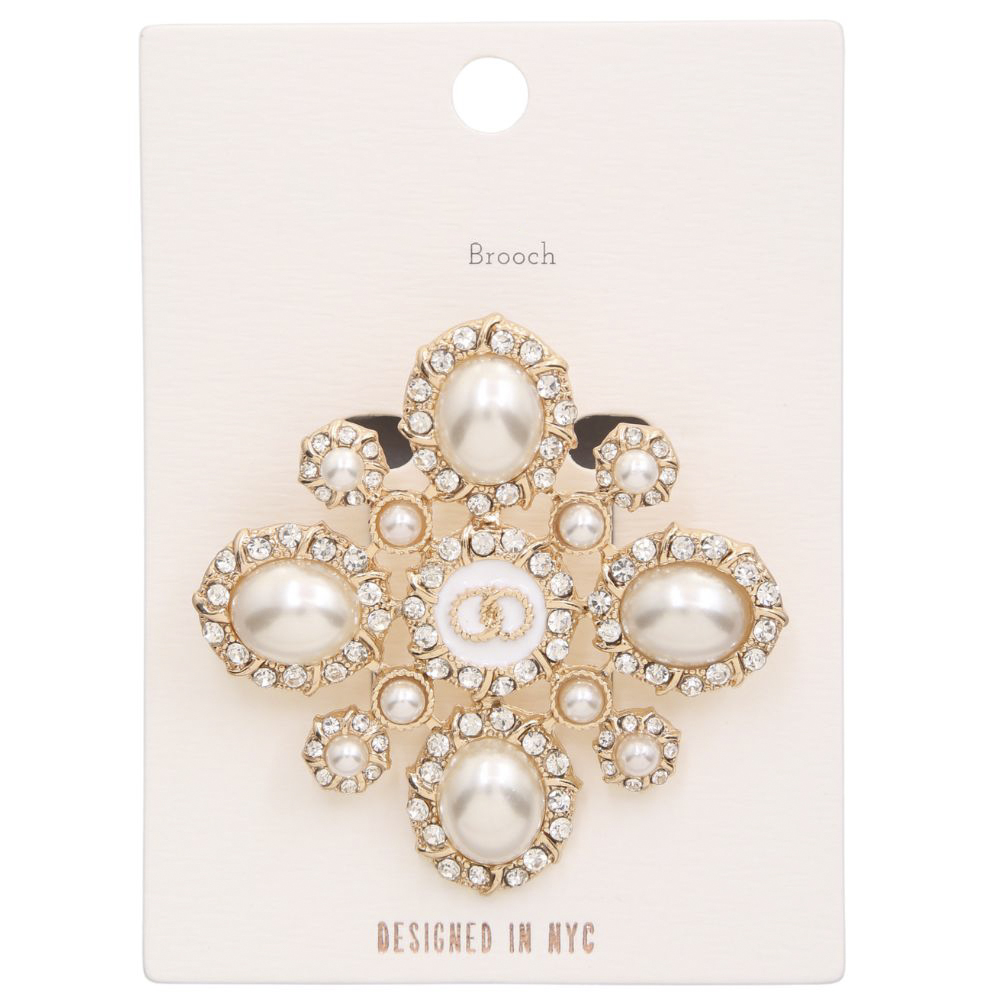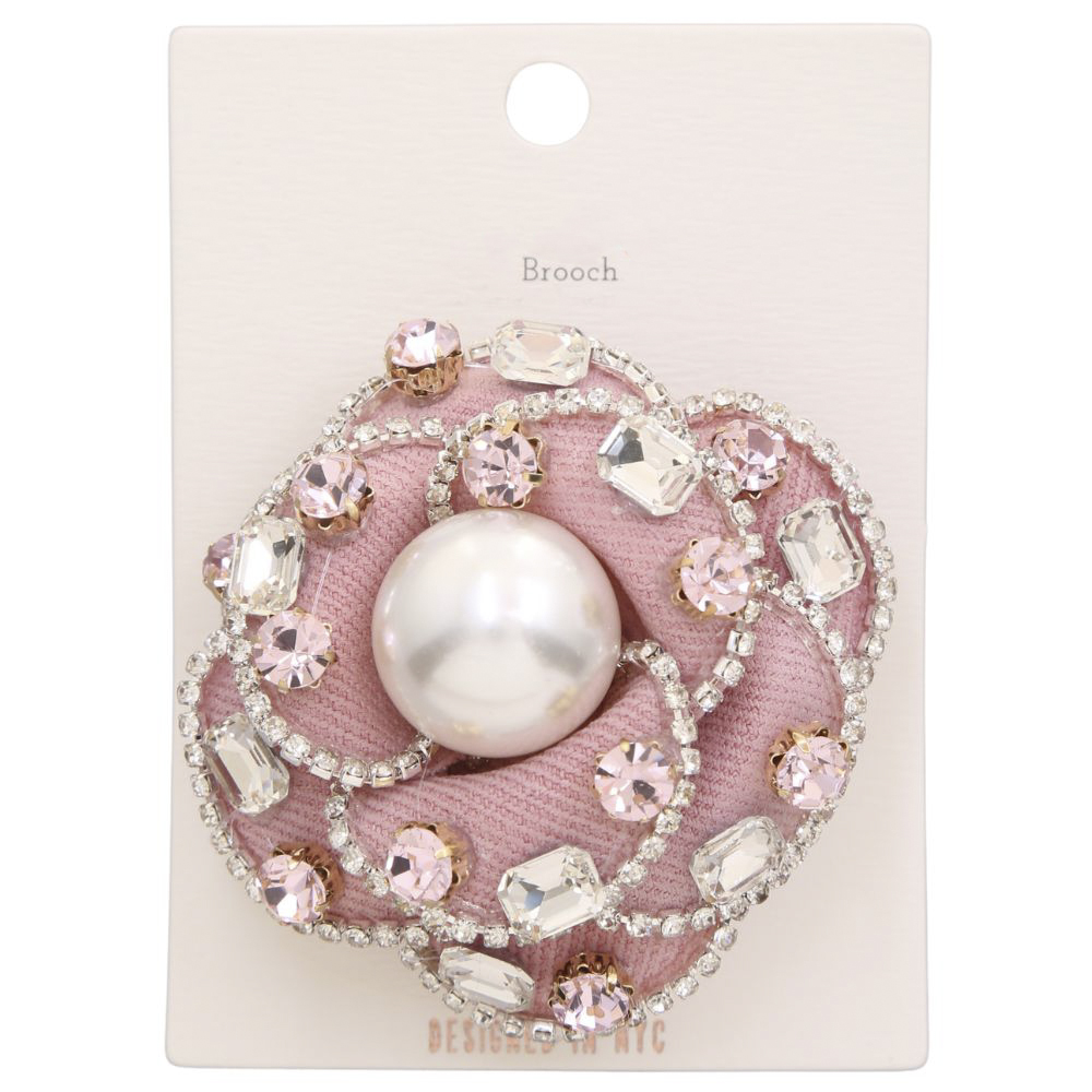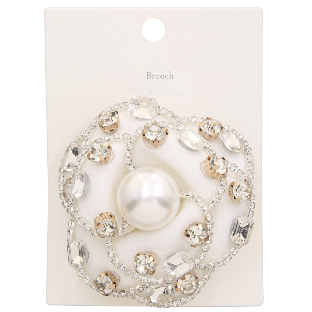 RHINESTONE PEARL BEAD FLOWER BROOCH