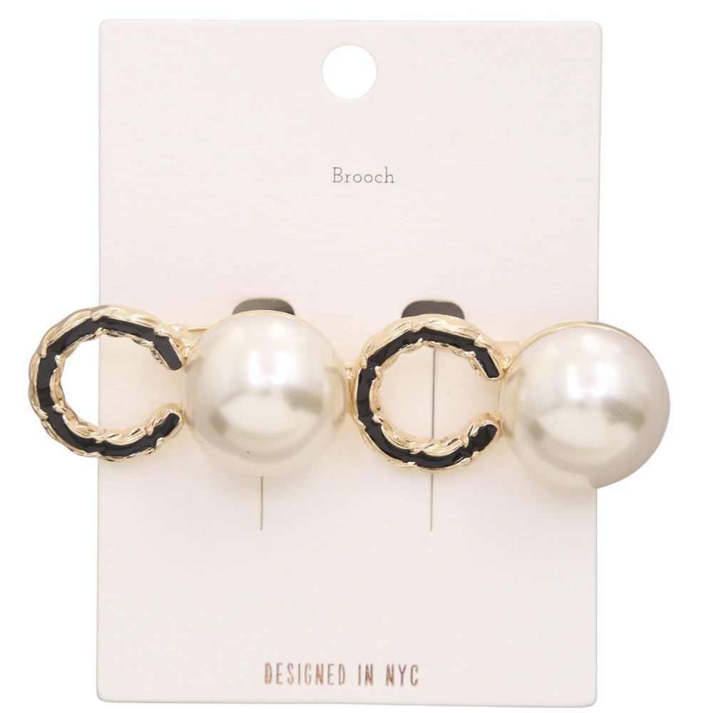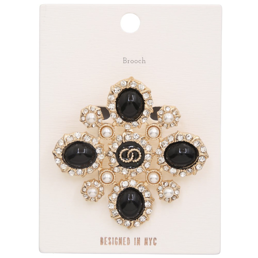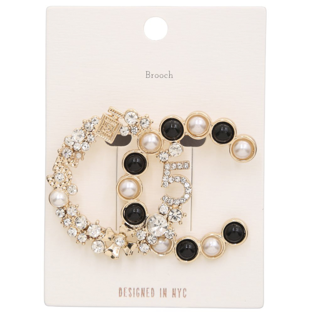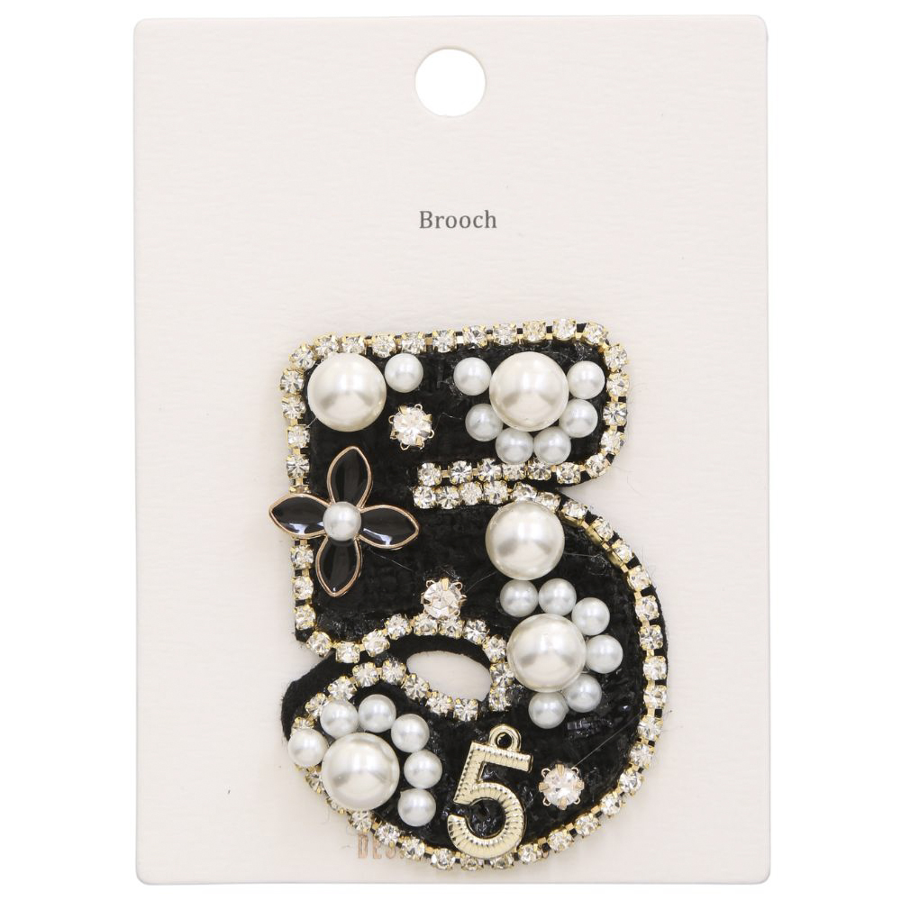 RHINESTONE PEARL BEAD FLOWER BROOCH