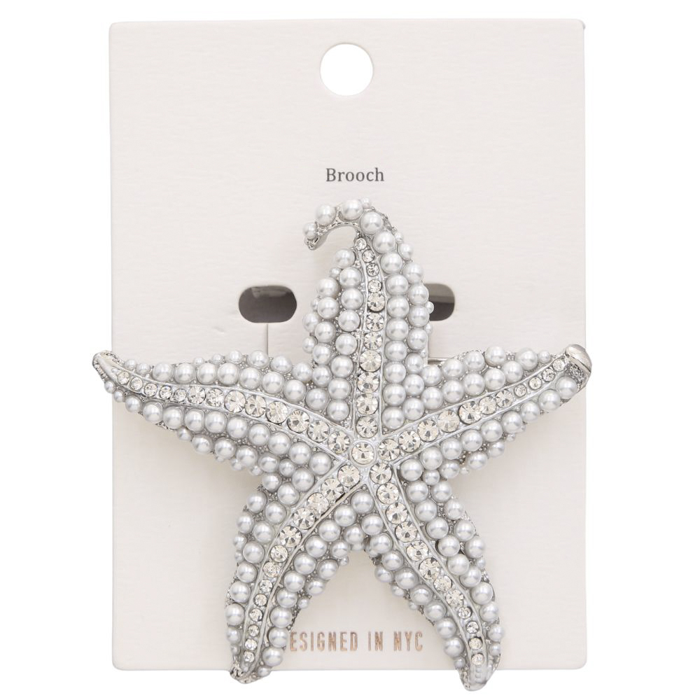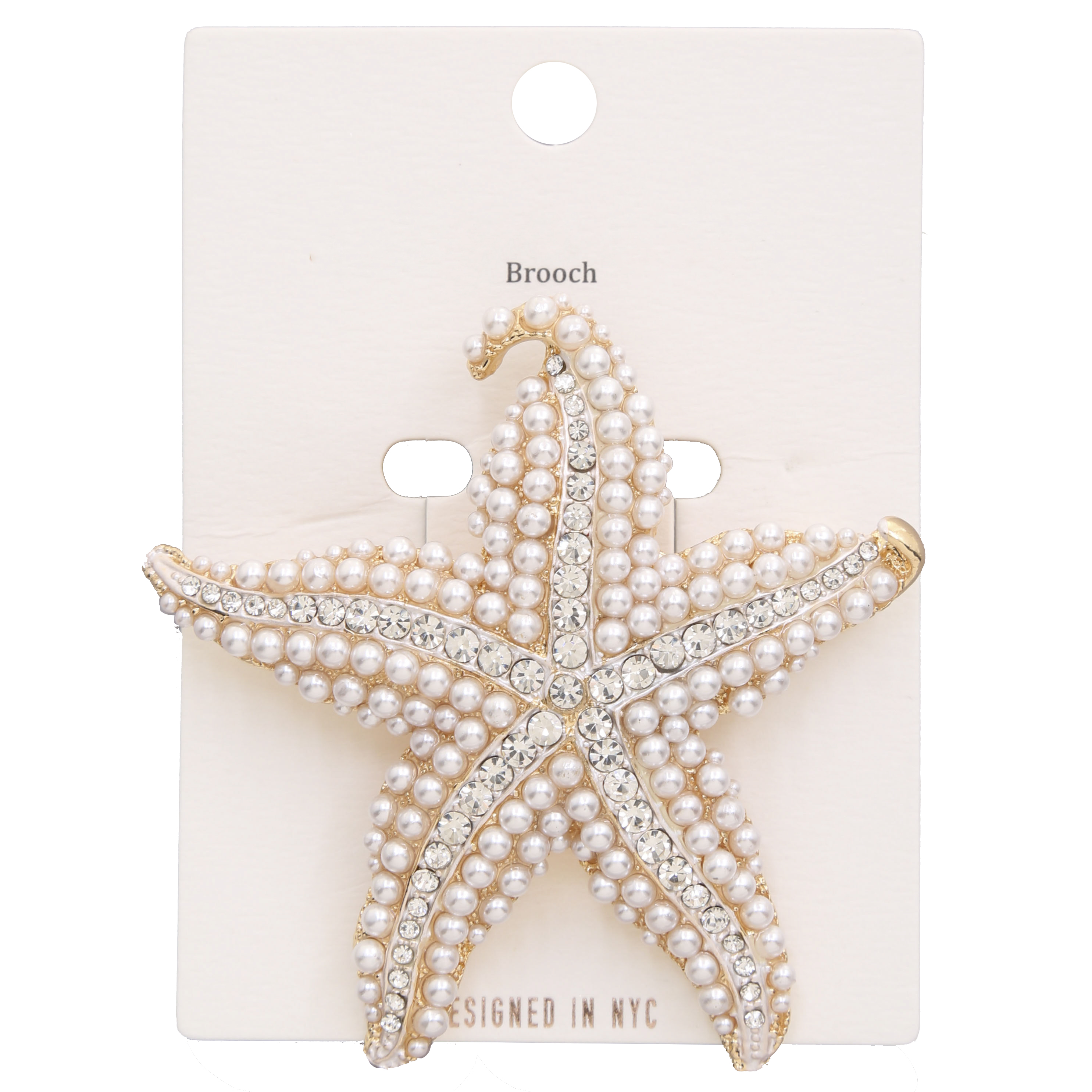 PEARL BEAD RHINESTONE STARFISH BROOCH