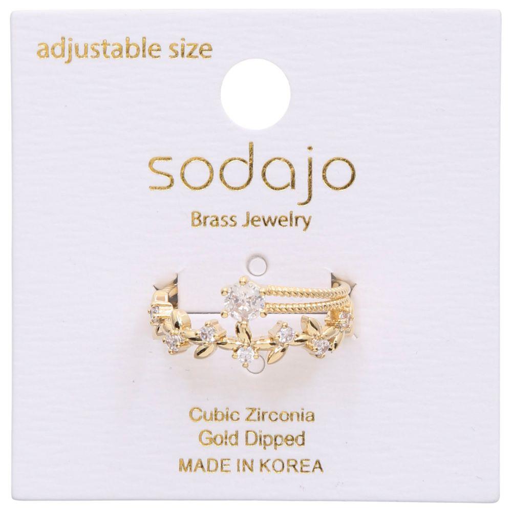 SODAJO LEAF FLOWER LINK CZ GOLD DIPPED ADJUSTABLE RING