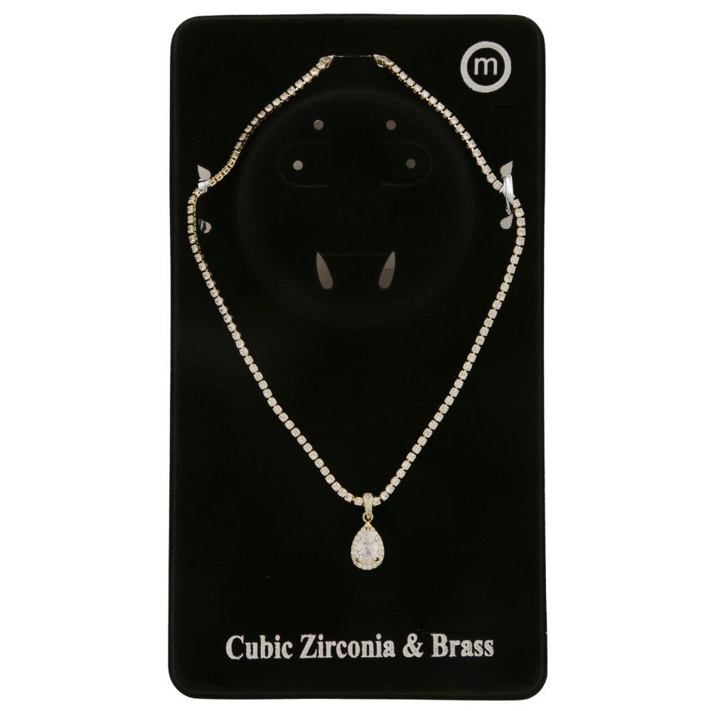 TEARDROP CZ BRASS NECKLACE