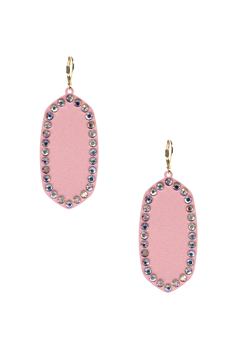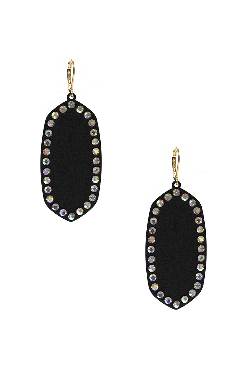 RHINESTONE EDGE HEXAGON DANGLE EARRING