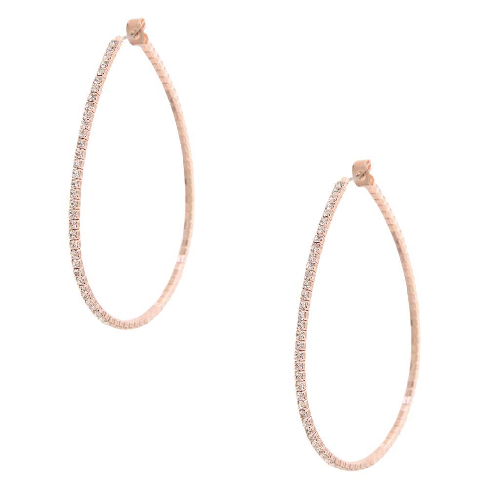 LONG OVAL RHINESTONE EDGE HOOP EARRING