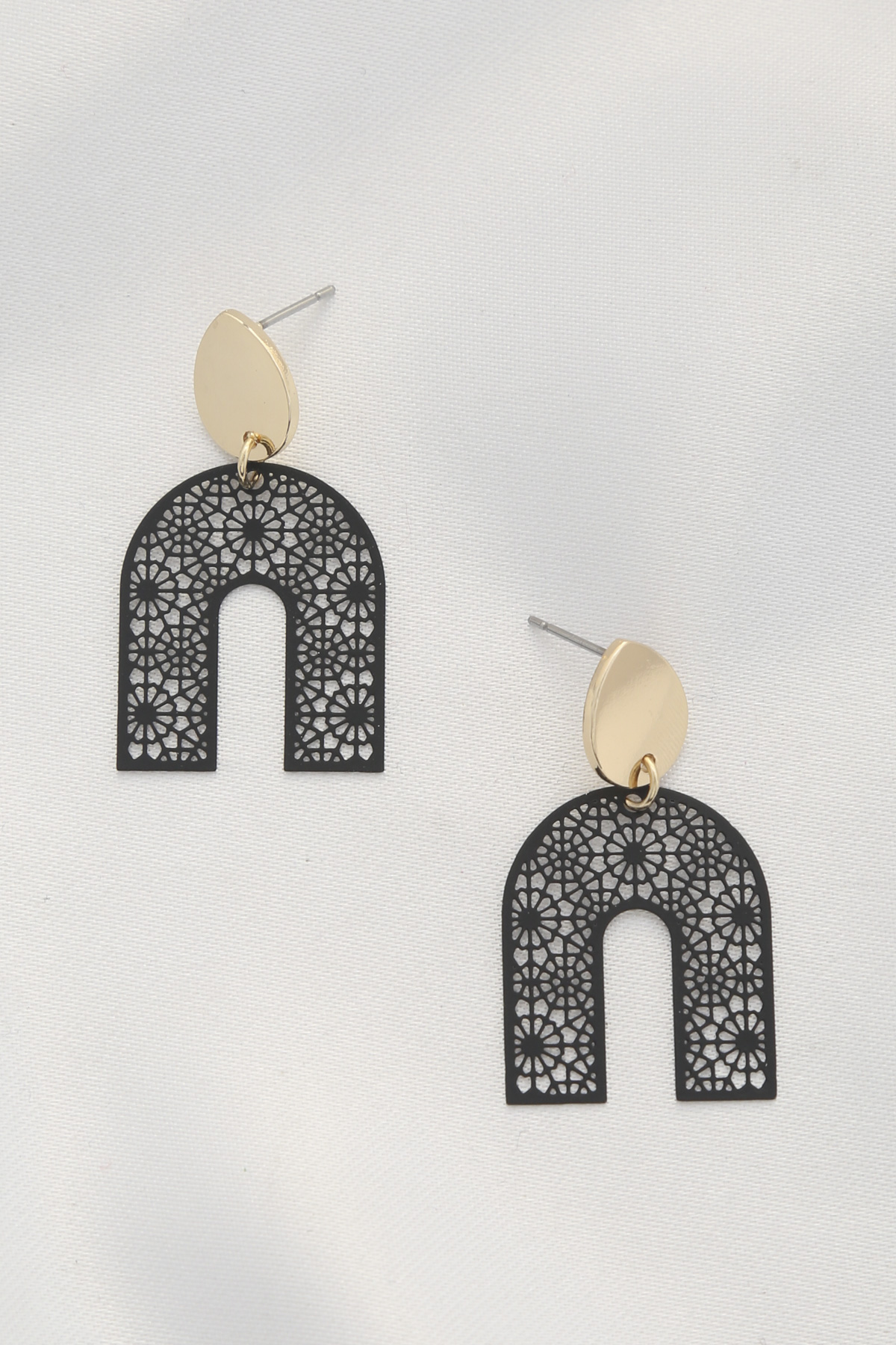 HALF CIRCLE ANIMAL PRINT PATTERN DROP EARRING