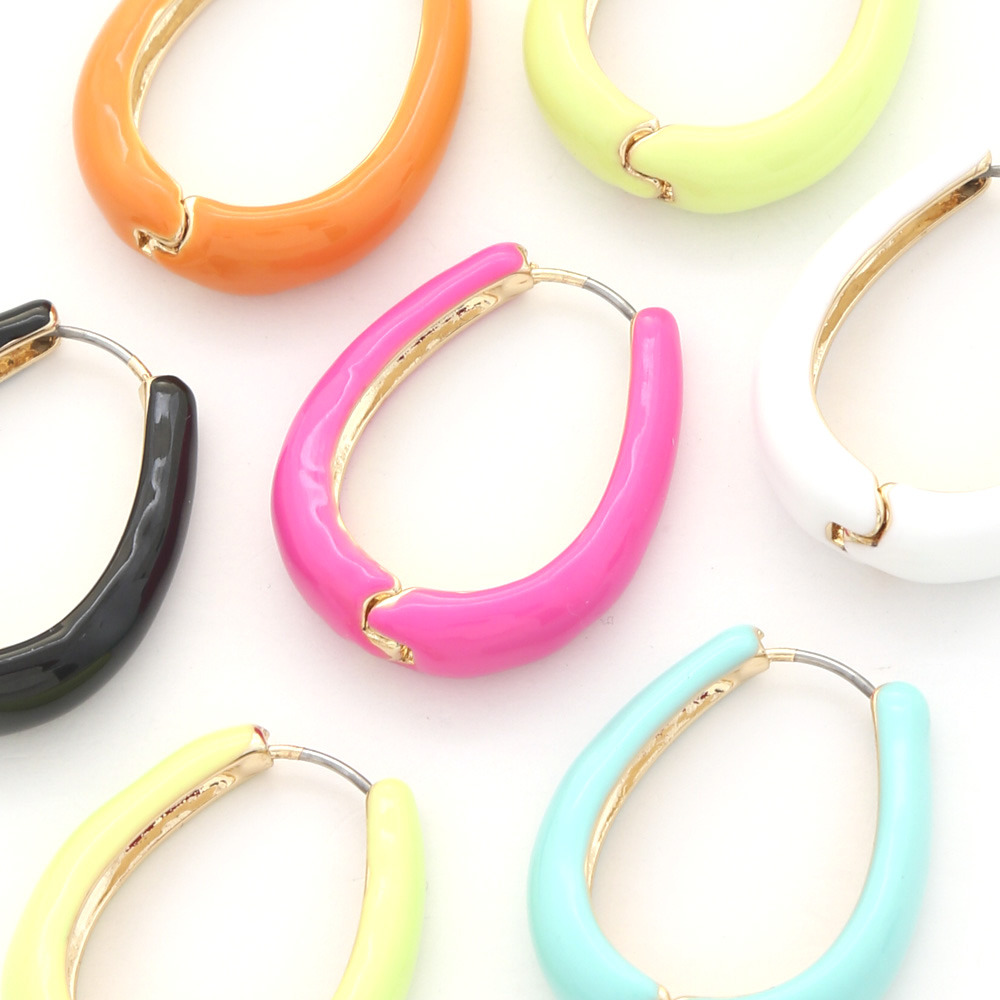 METAL ACRYLIC OVAL DROP HOOP EARRING