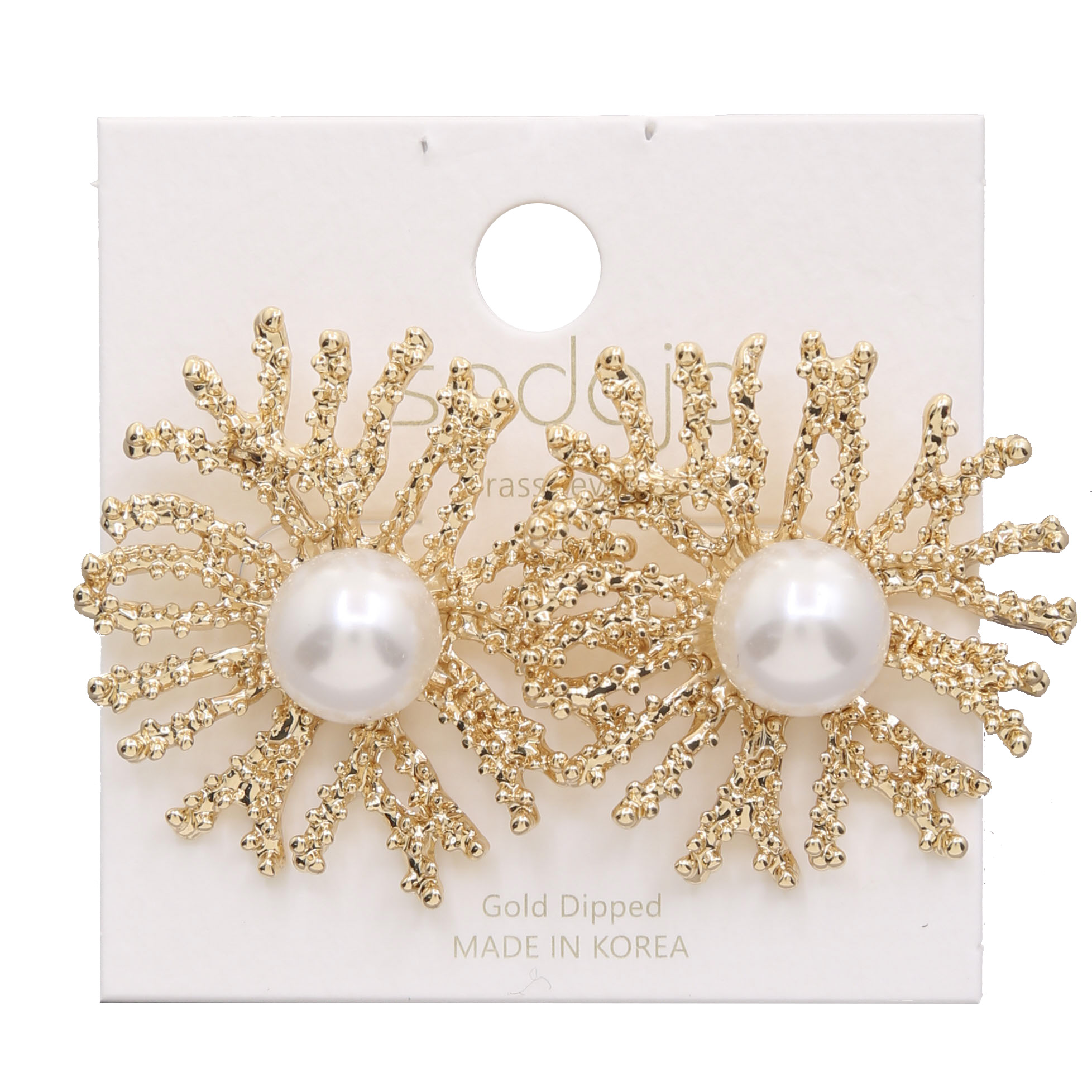SODAJO PEARL BEAD METAL FLOWER GOLD DIPPED EARRING