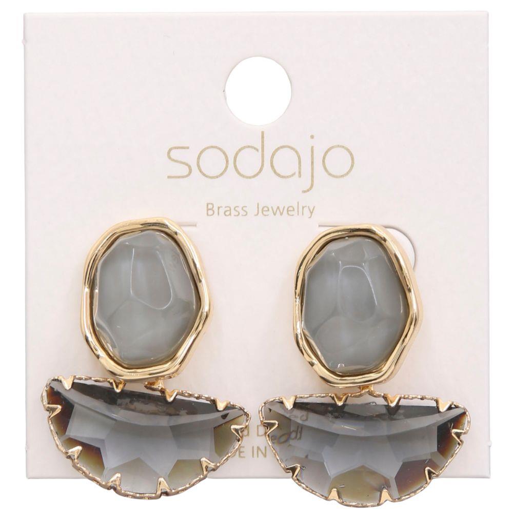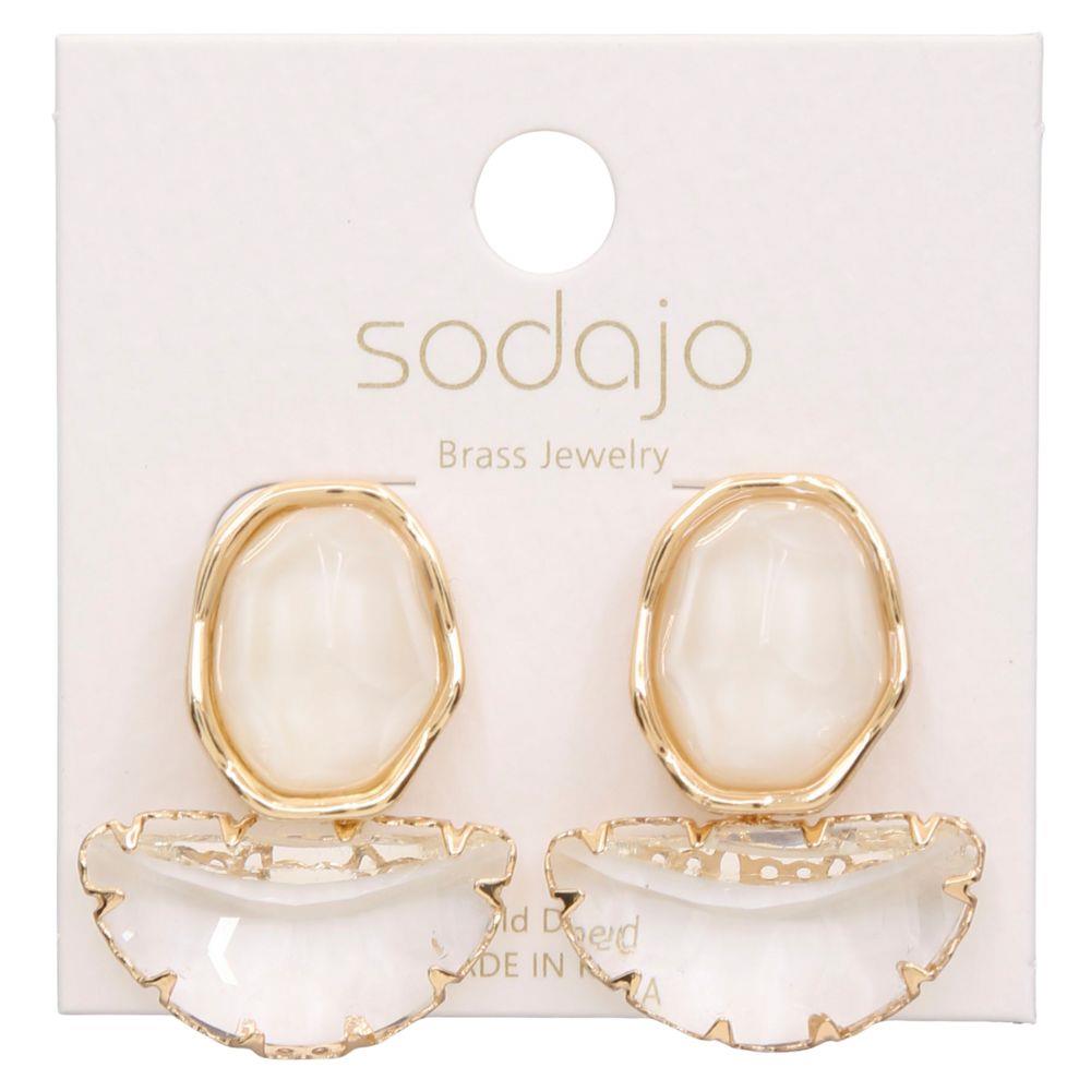 SODAJO OVAL STONE METAL GOLD DIPPED EARRING