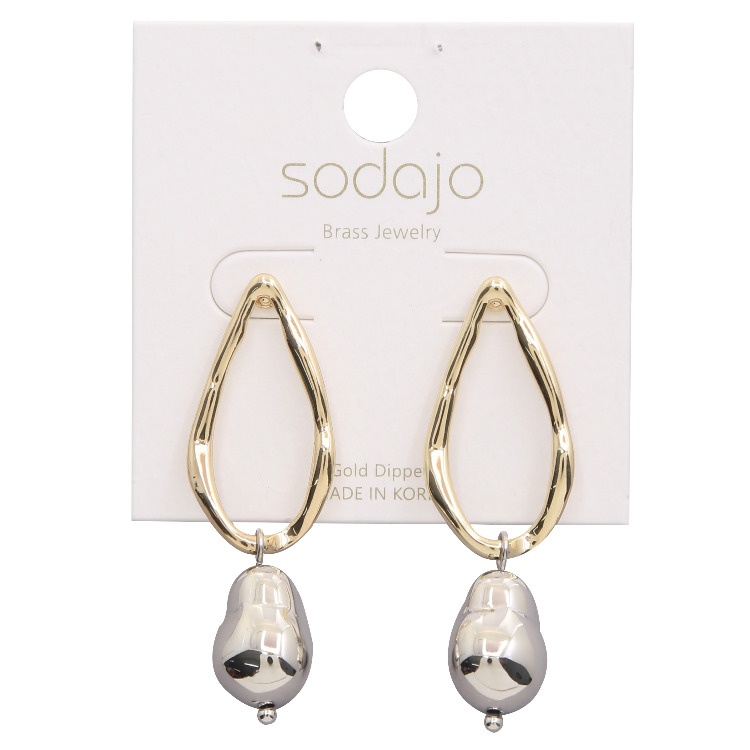 SODAJO TWO TONE TEARDROP ORGANIC SHAPE GOLD DIPPED EARRING