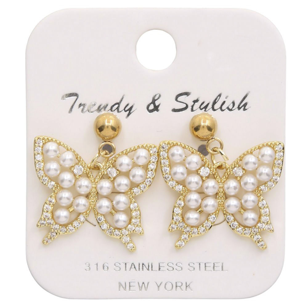 PEARL BUTTERFLY STAINLESS STEEL DANGLE EARRING