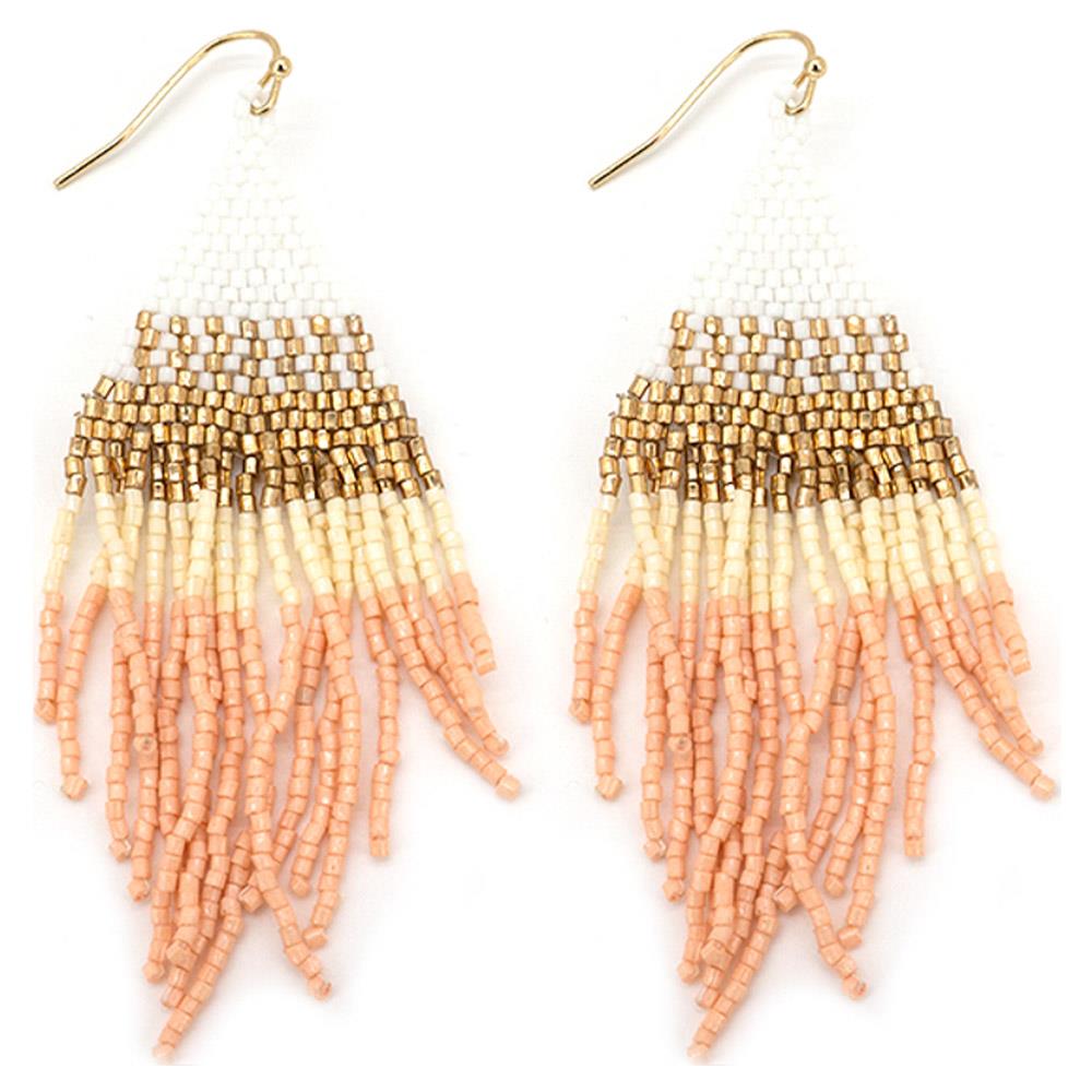 SEED BEAD FRINGE TIERED DANGLE EARRINGS