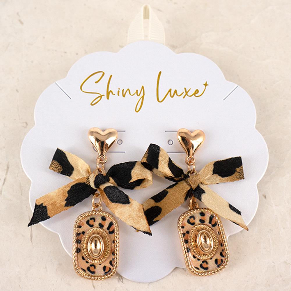 LEOPARD RIBBON HEART DANGLE EARRING