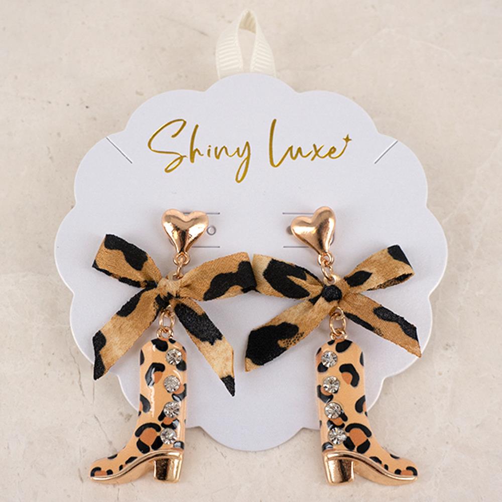 LEOPARD RIBBON COWBOY BOOTS DANGLE EARRING