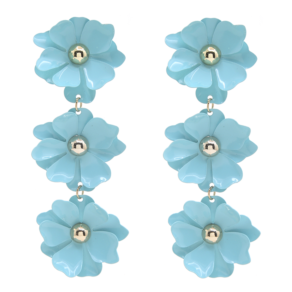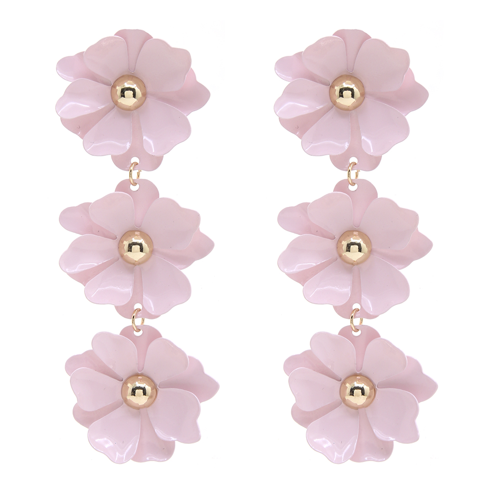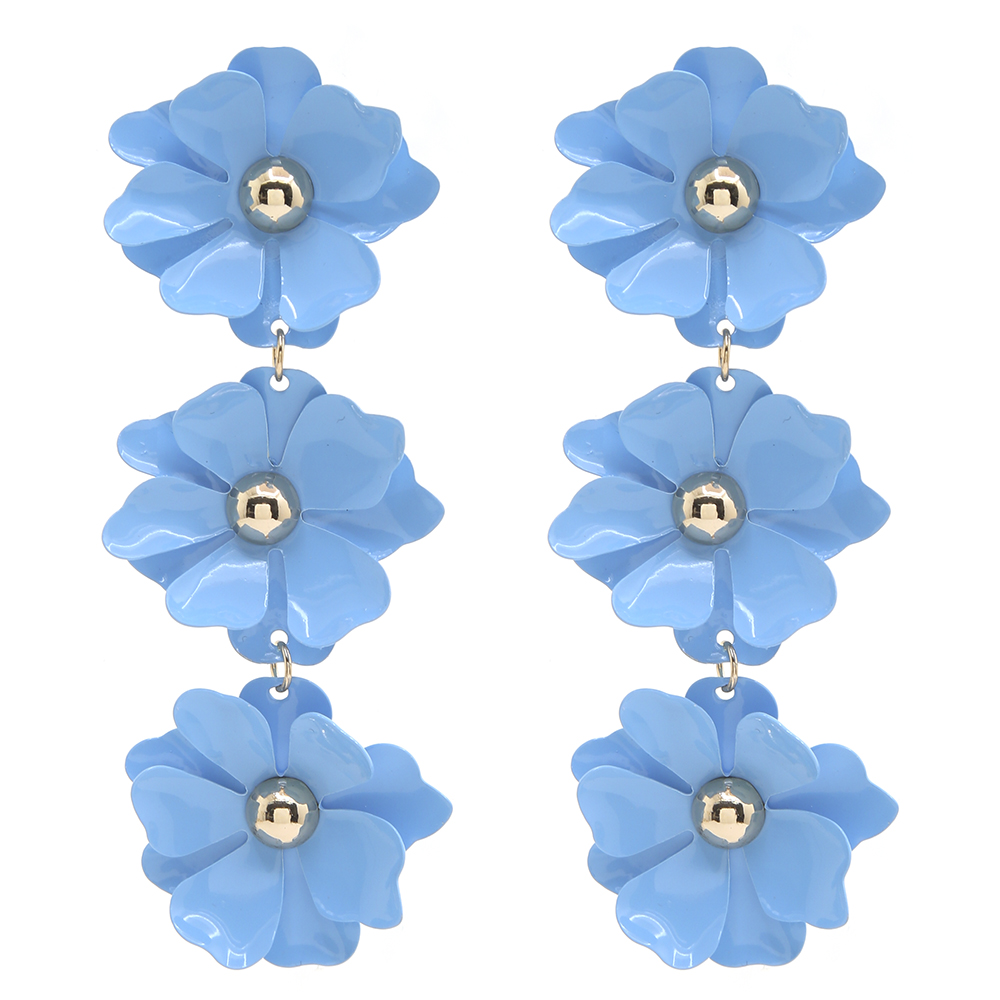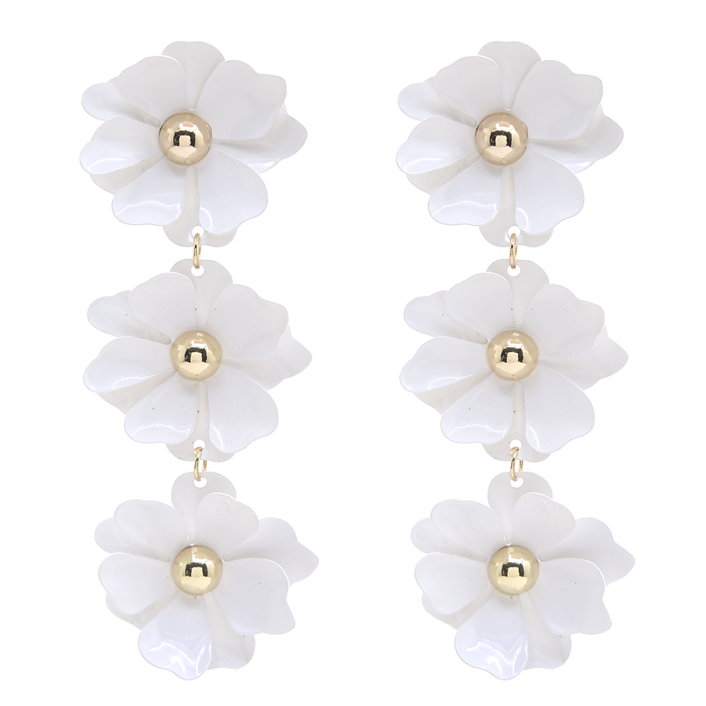 TEXTURED FLOWER W/RESIN DANGLE POST EARRING