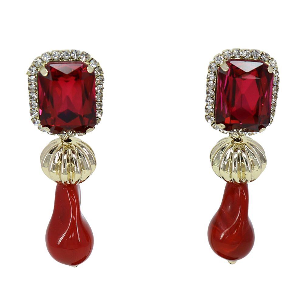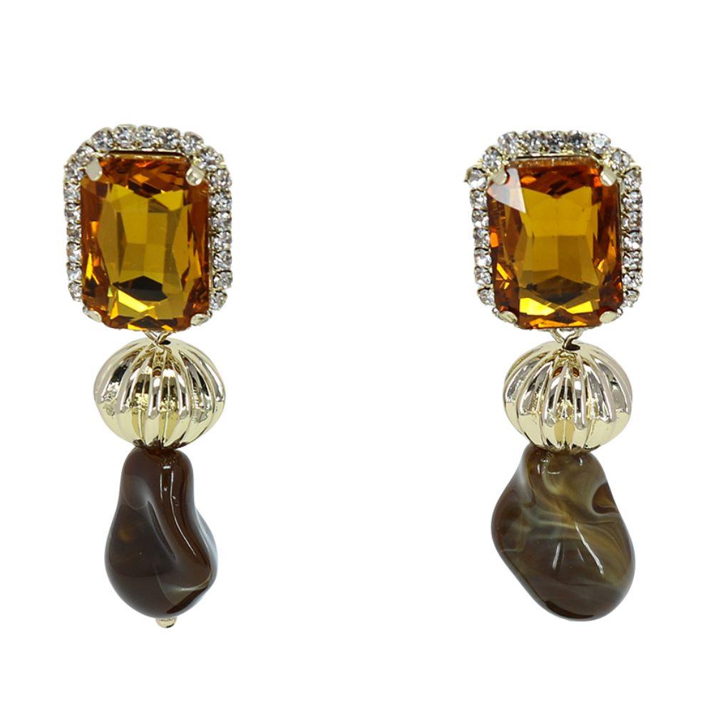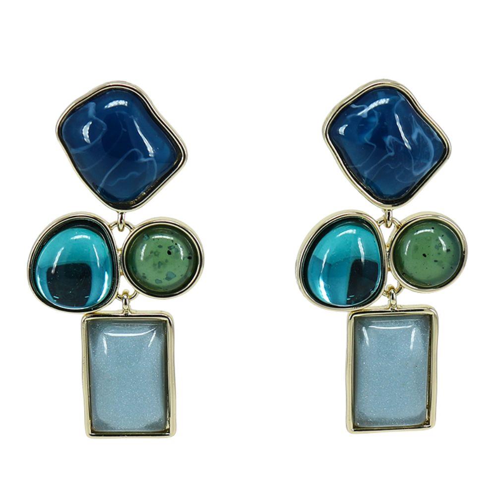 COLOR STONE GEO SHAPE DANGLE EARRING