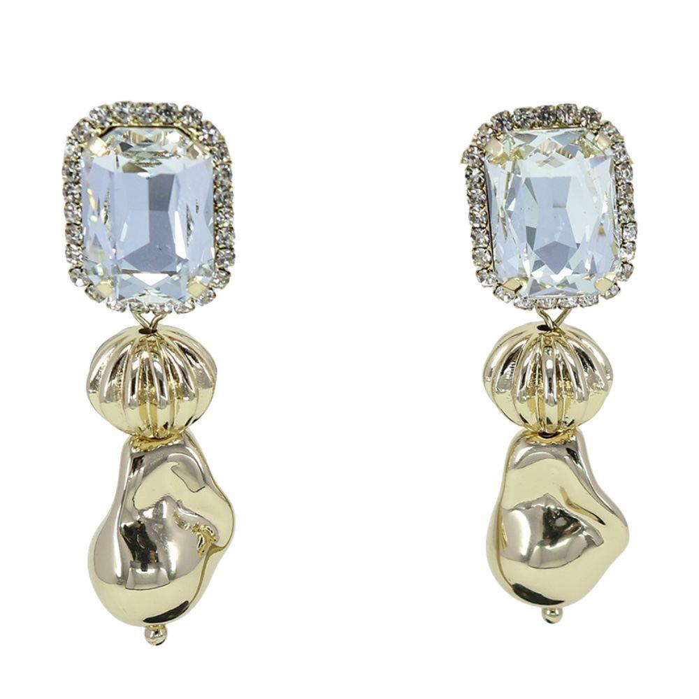 CRYSTAL STONE BEAD LINK DANGLE EARRING
