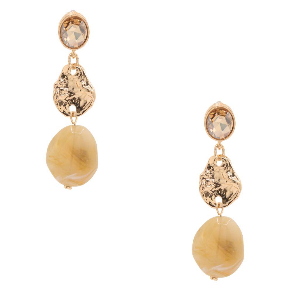 CRYSTAL HAMMERED METAL BEAD LINK DANGLE EARRING
