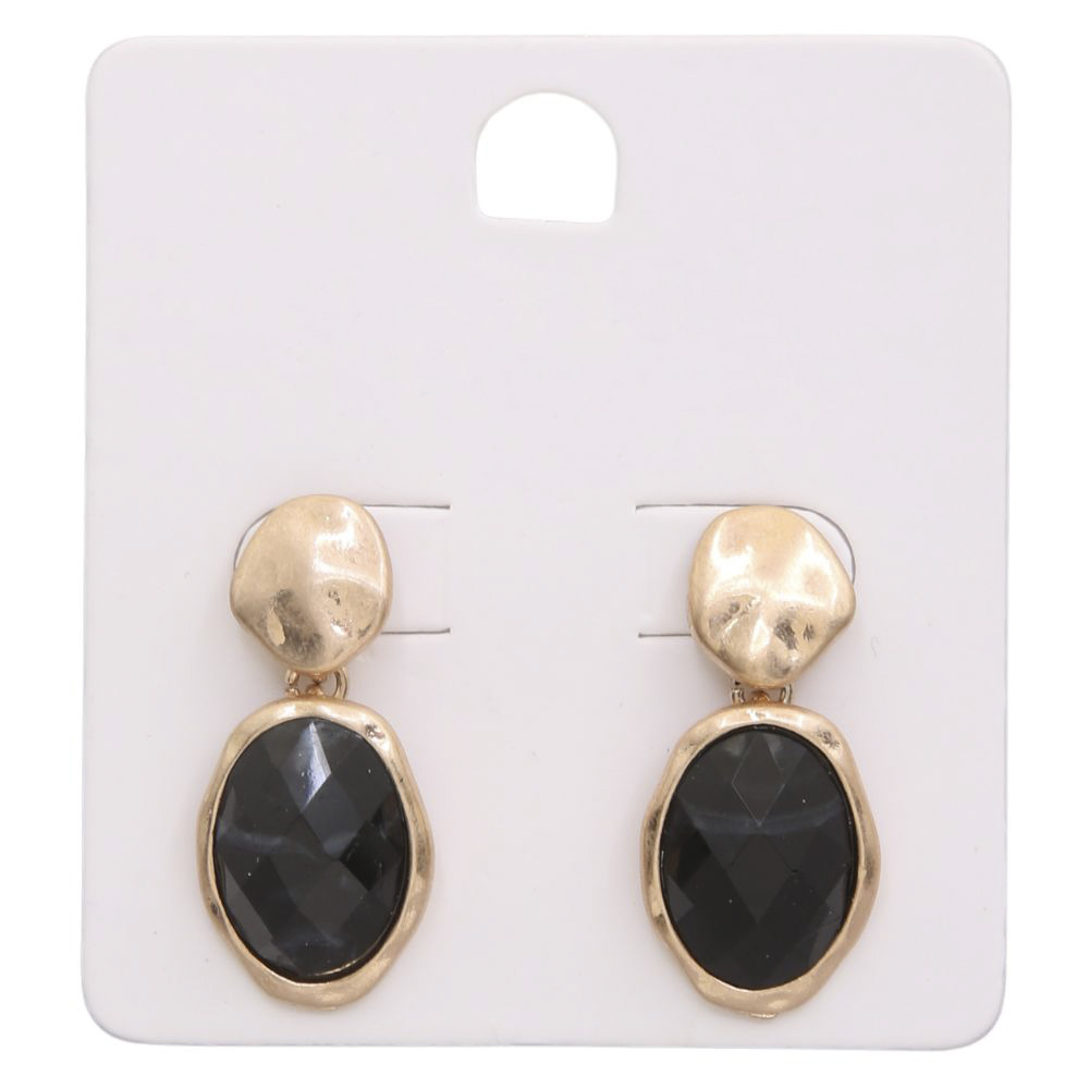 HAMMERED METAL TEARDROP OVAL BEAD DANGLE EARRING