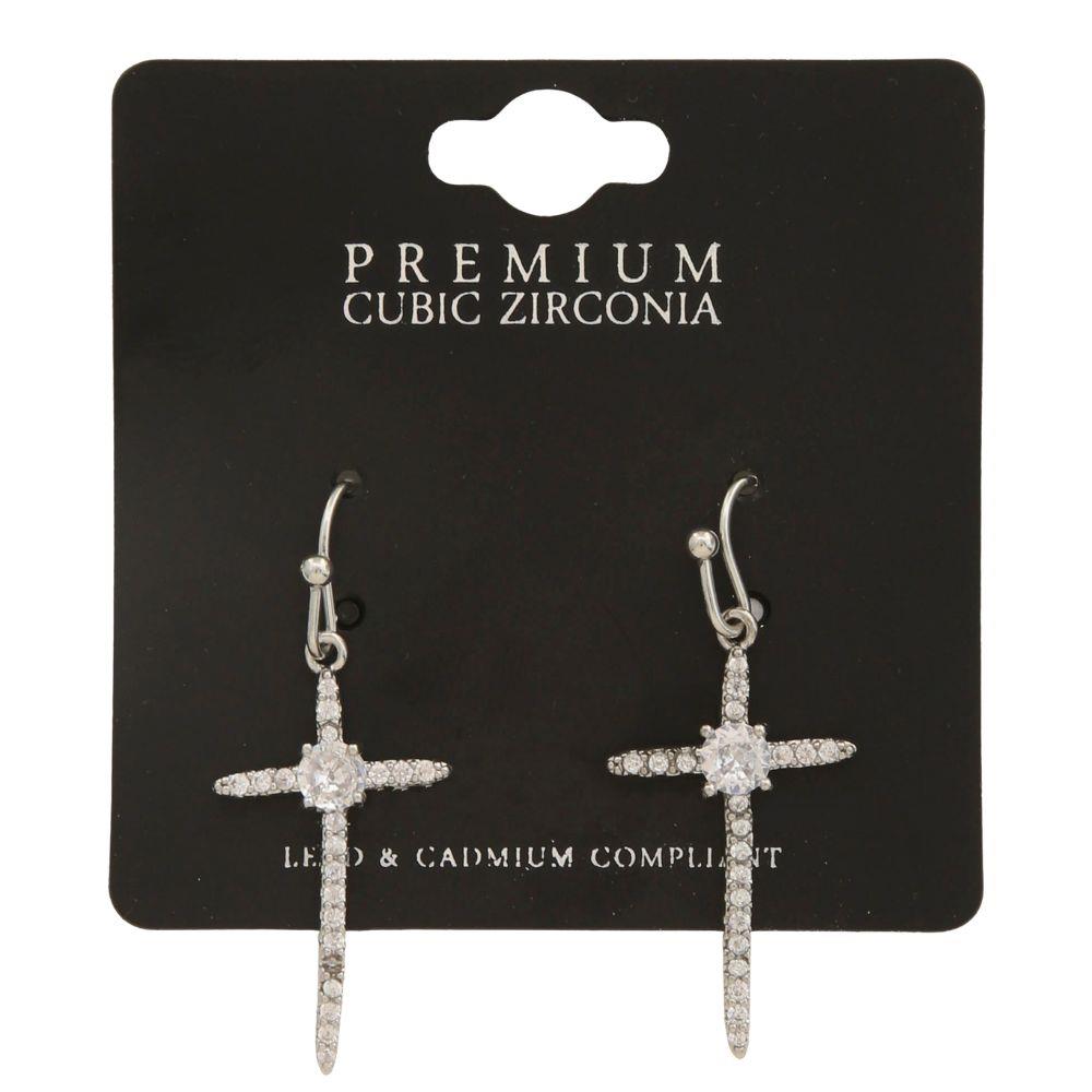 CZ CROSS CENTER STONE EARRING