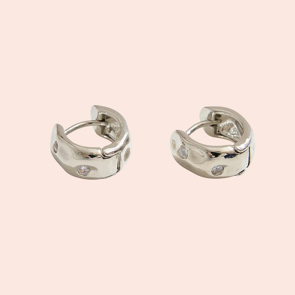 14K GOLD DIPPED HAMMERED CZ HUGGIE HOOP EARRING