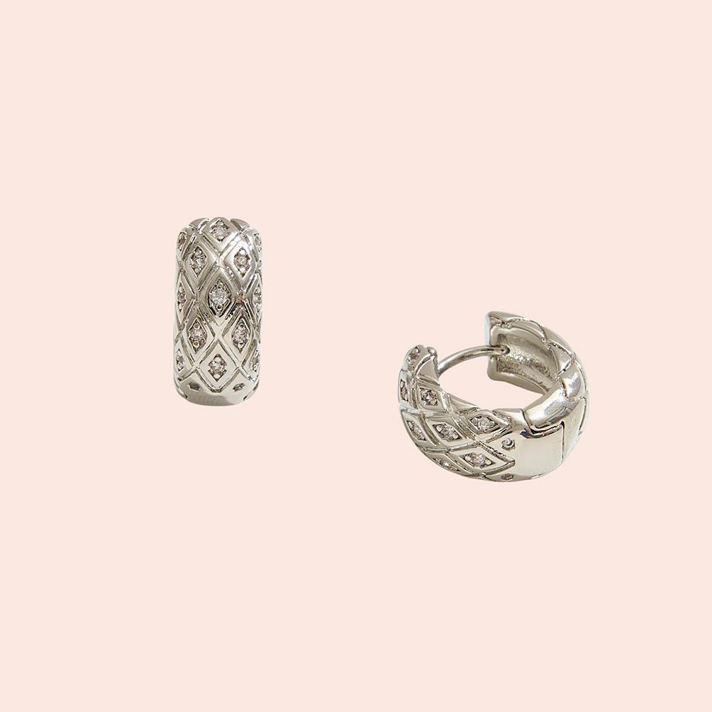 14K GOLD DIPPED CZ QUILTED DESIGN HUGGIE HOOP EARRING