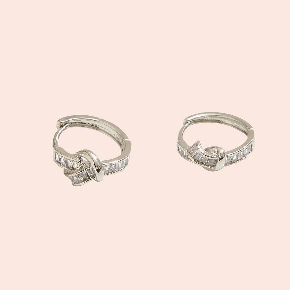 14K GOLD DIPPED CZ KNOT HUGGIE HOOP EARRING