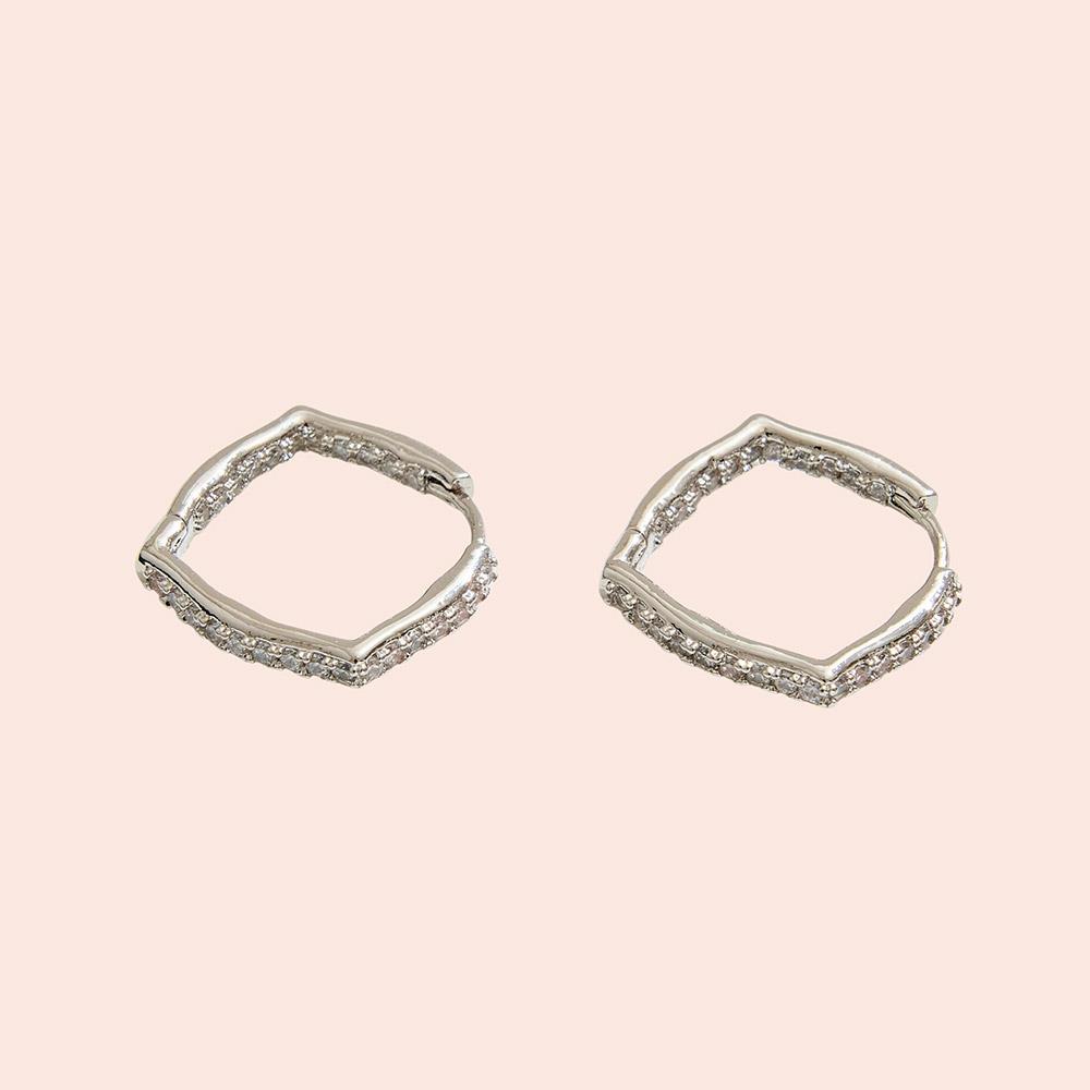 14K GOLD DIPPED DISORGANIZED CZ HUGGIE EARRING