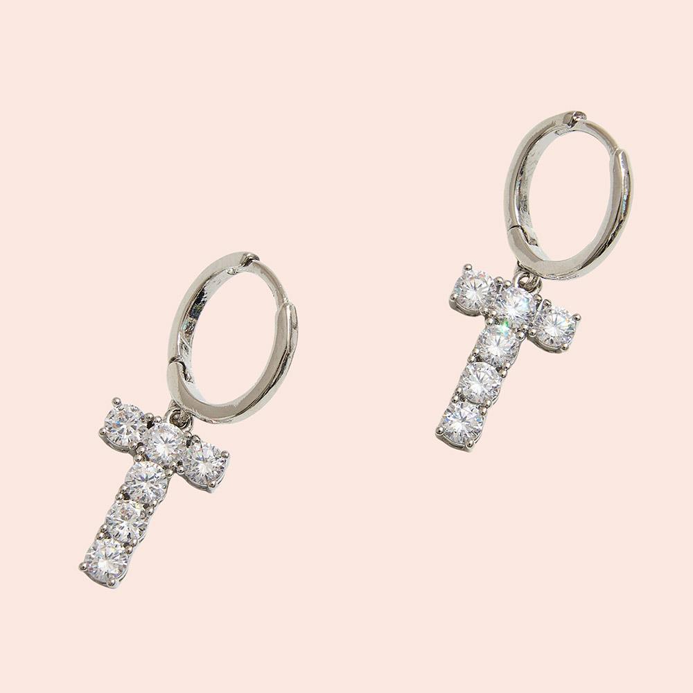 CZ CROSS BRASS EARRING