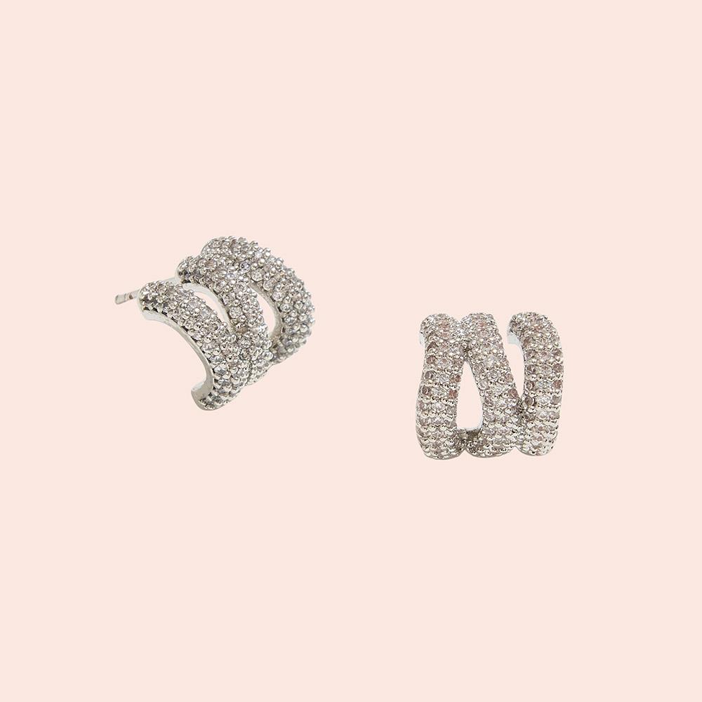 14K GOLD DIPPED TRIPLE BAND CZ PAVE POST EARRING