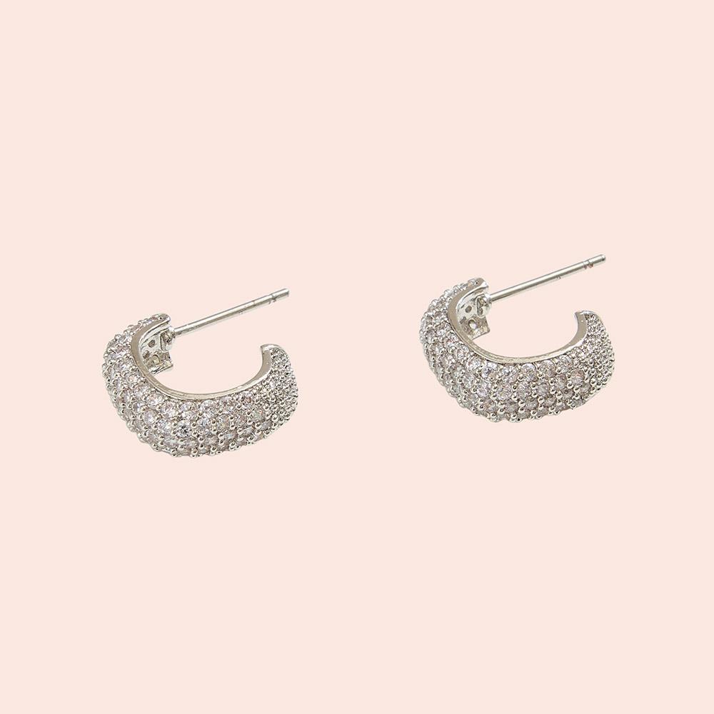 14K GOLD DIPPED HUGGIE HOOP CZ PAVED EARRING
