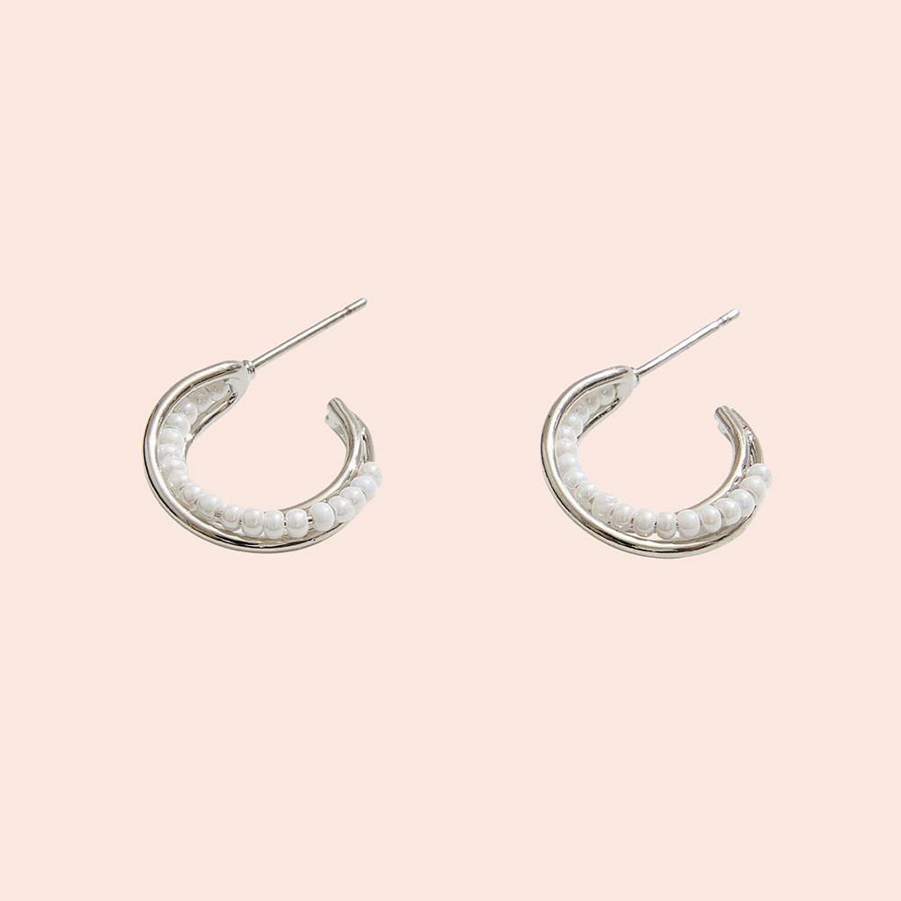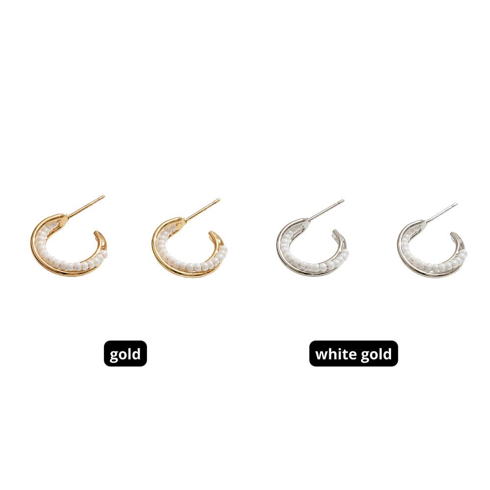 14K GOLD DIPPED SMALL POST HOOP WITH PEARL BEADS