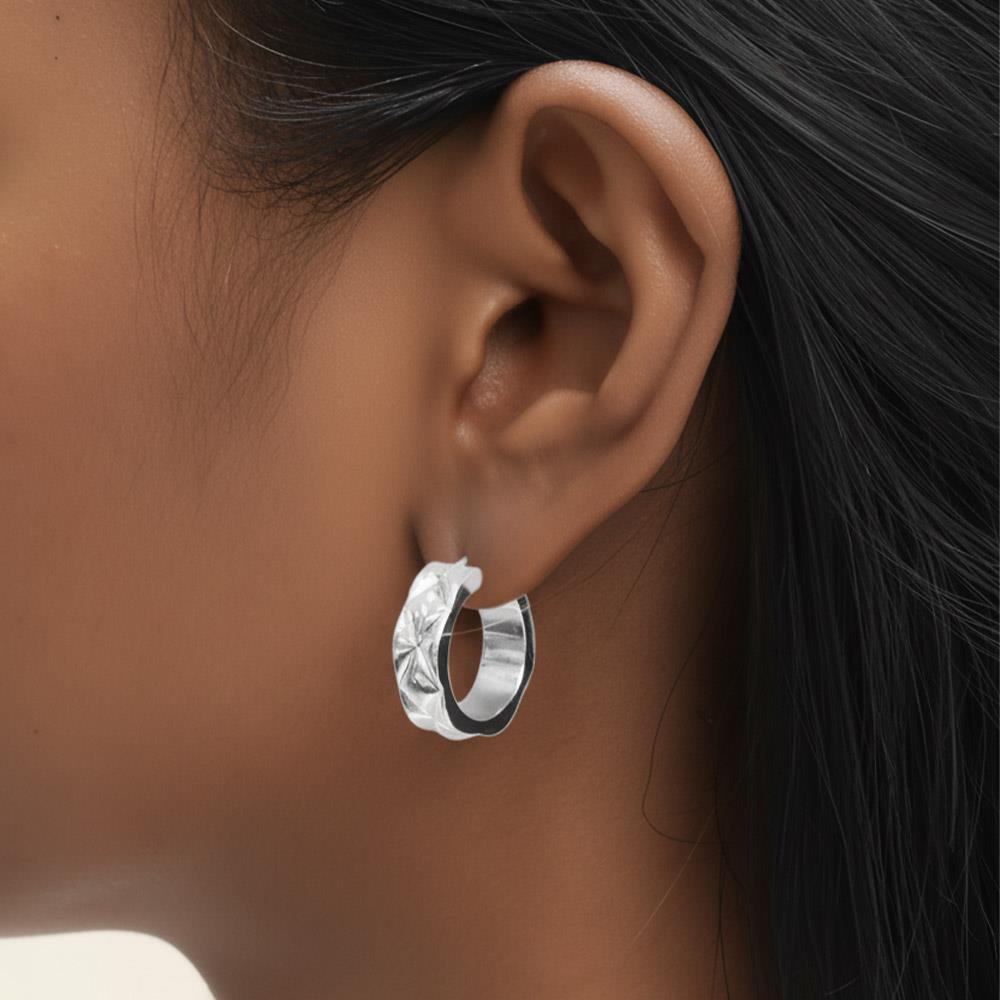 14K GOLD WHITE GOLD DIPPED TEXTURED POST HOOP EARRINGS