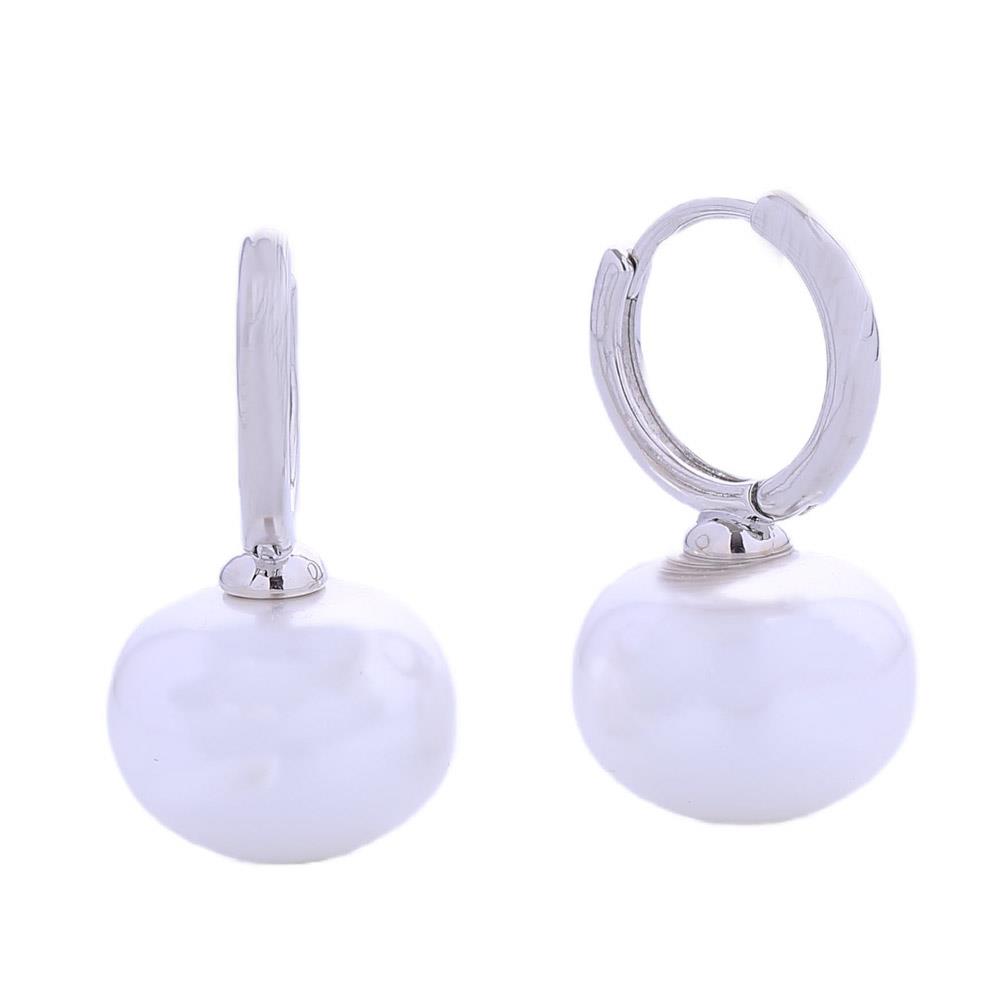 14K GOLD DIPPED DANGLING PEARL HUGGIE EARRING