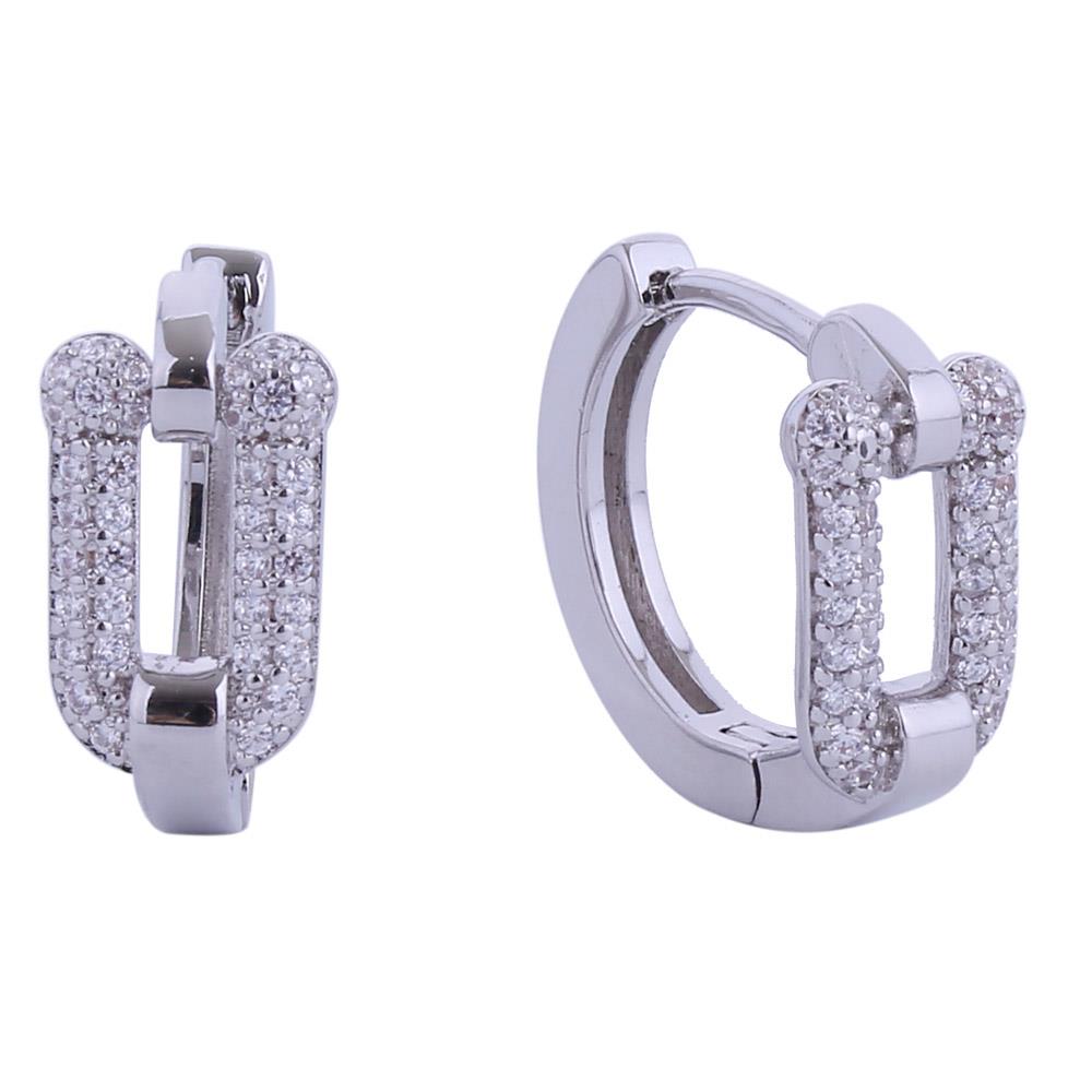 THREE A CZ BRASS  LINK HOOP EARRING