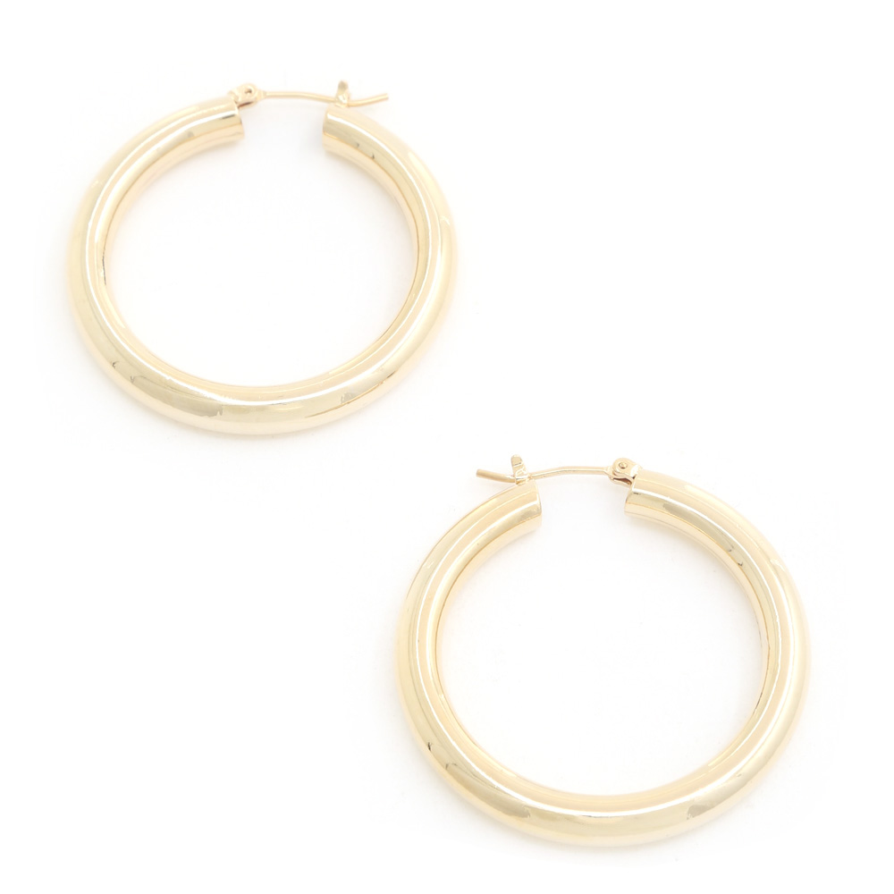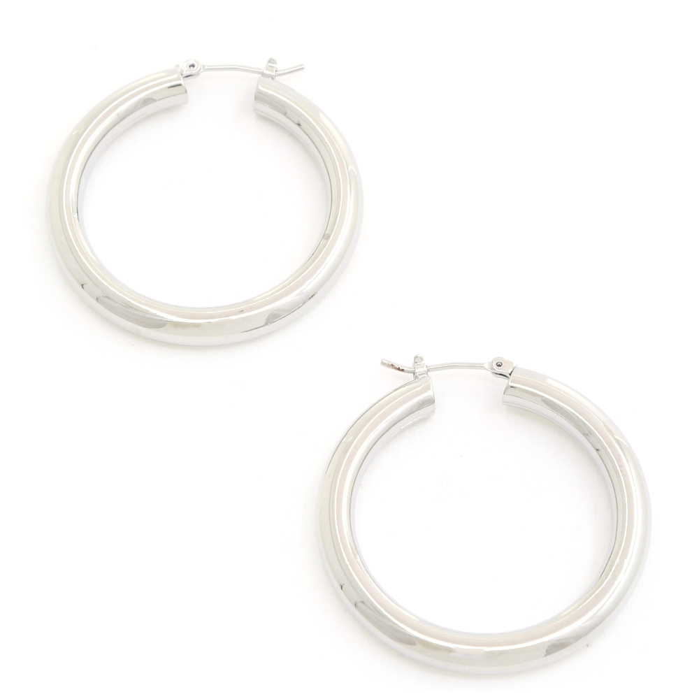 POLISHED METAL MEDIUM THICK HOOP EARRING