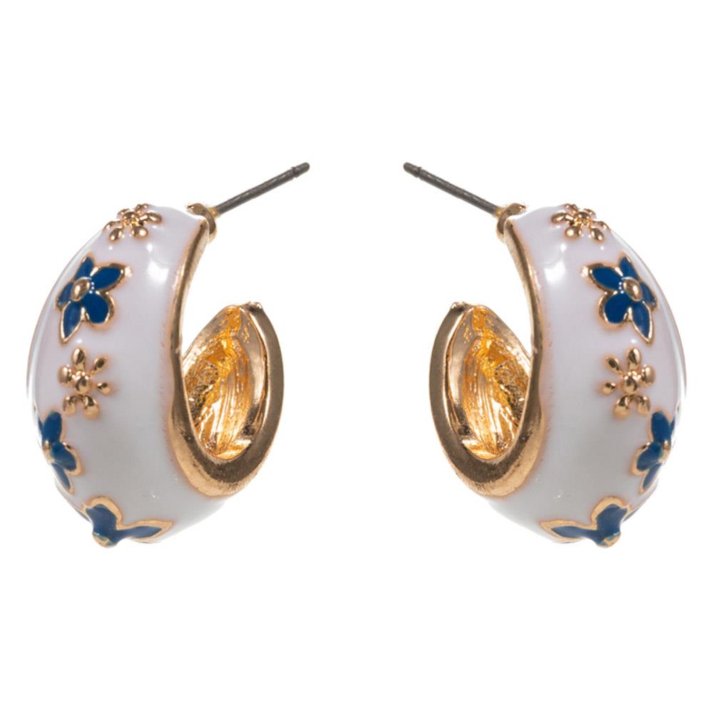 ROUND SHAPE ENAMELED HOOP W/ FLOWER PATTERN EARRING