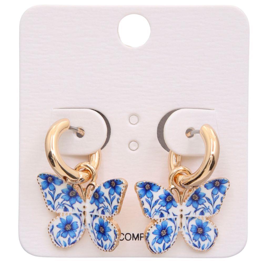 FLORAL PATTERN BUTTERFLY HUGGIE EARRING